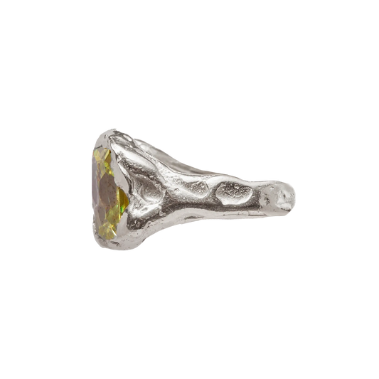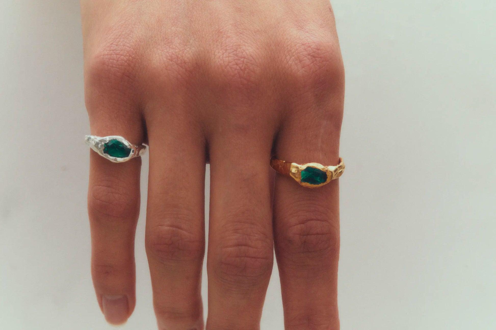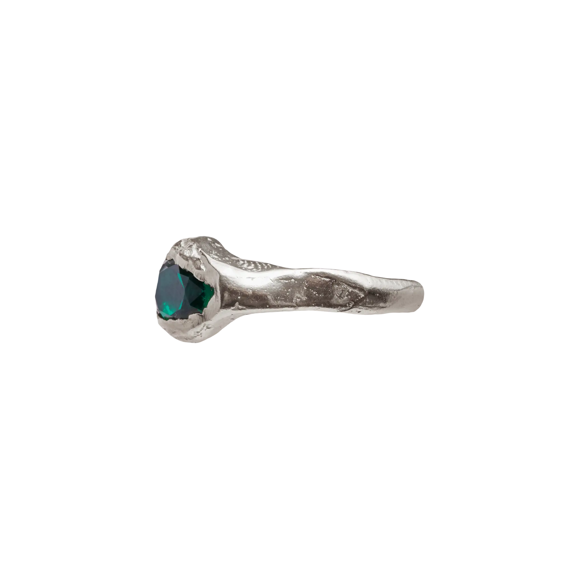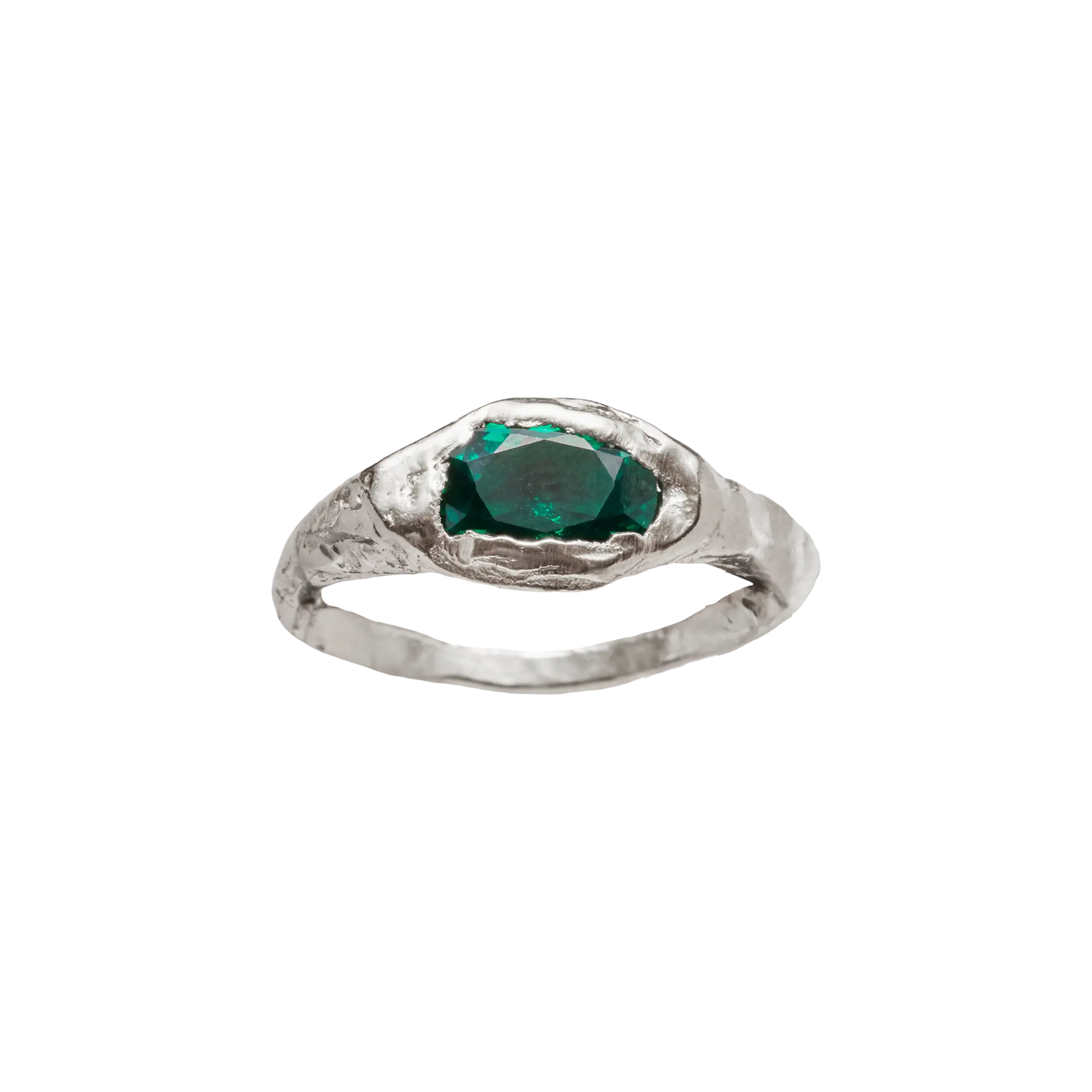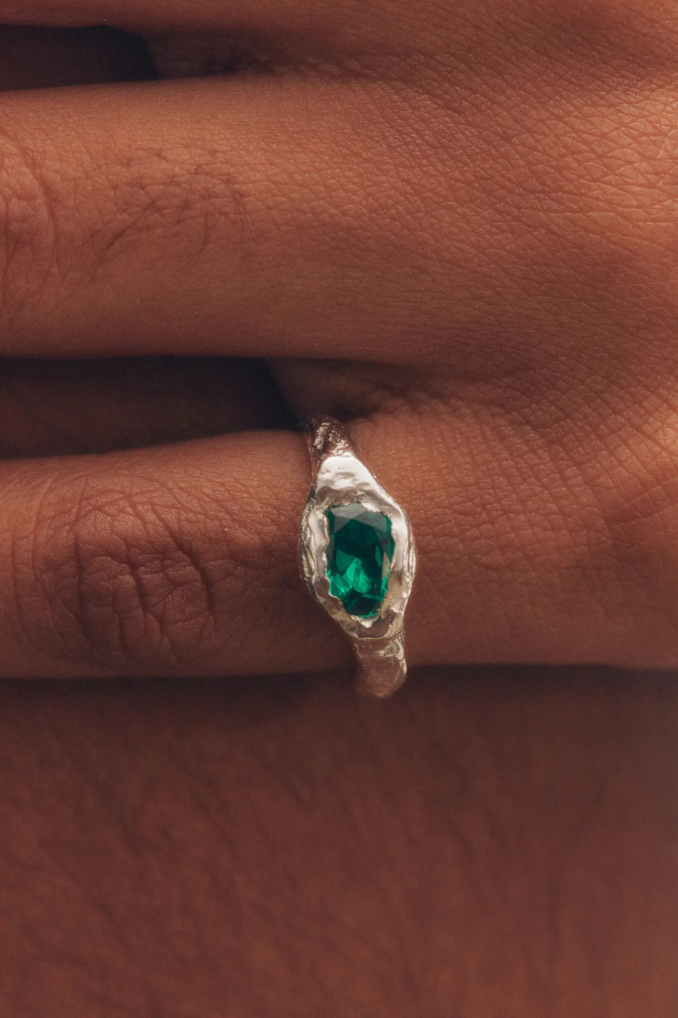 Faro Green, anillo artesanal de plata de ley 925 reciclada con piedra Cz de esmeralda verde.