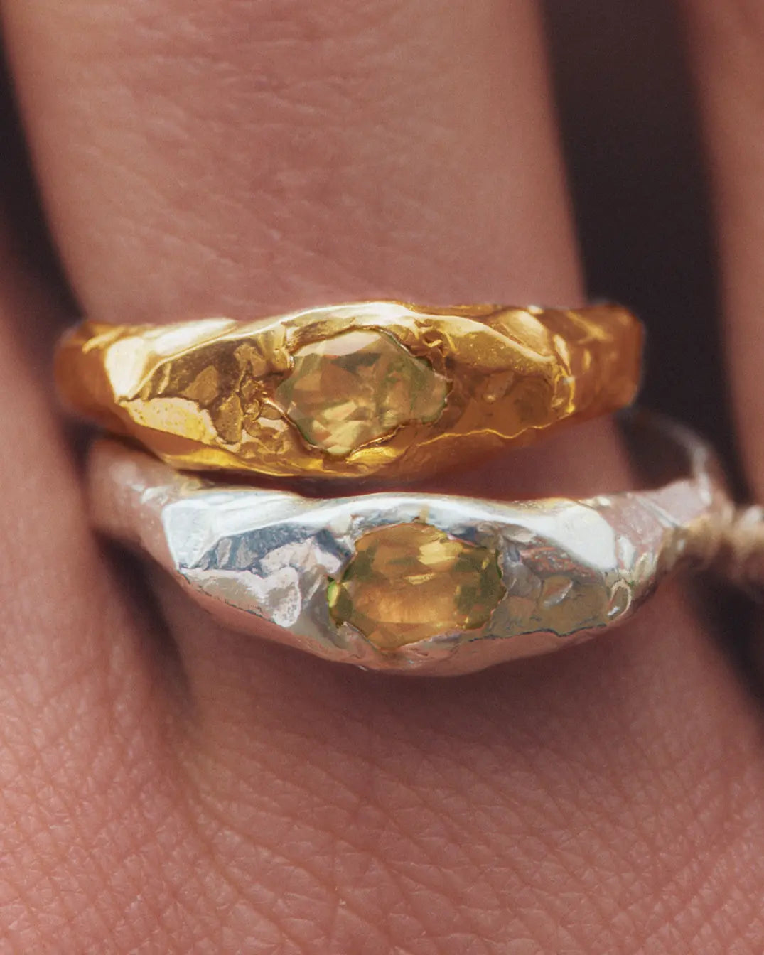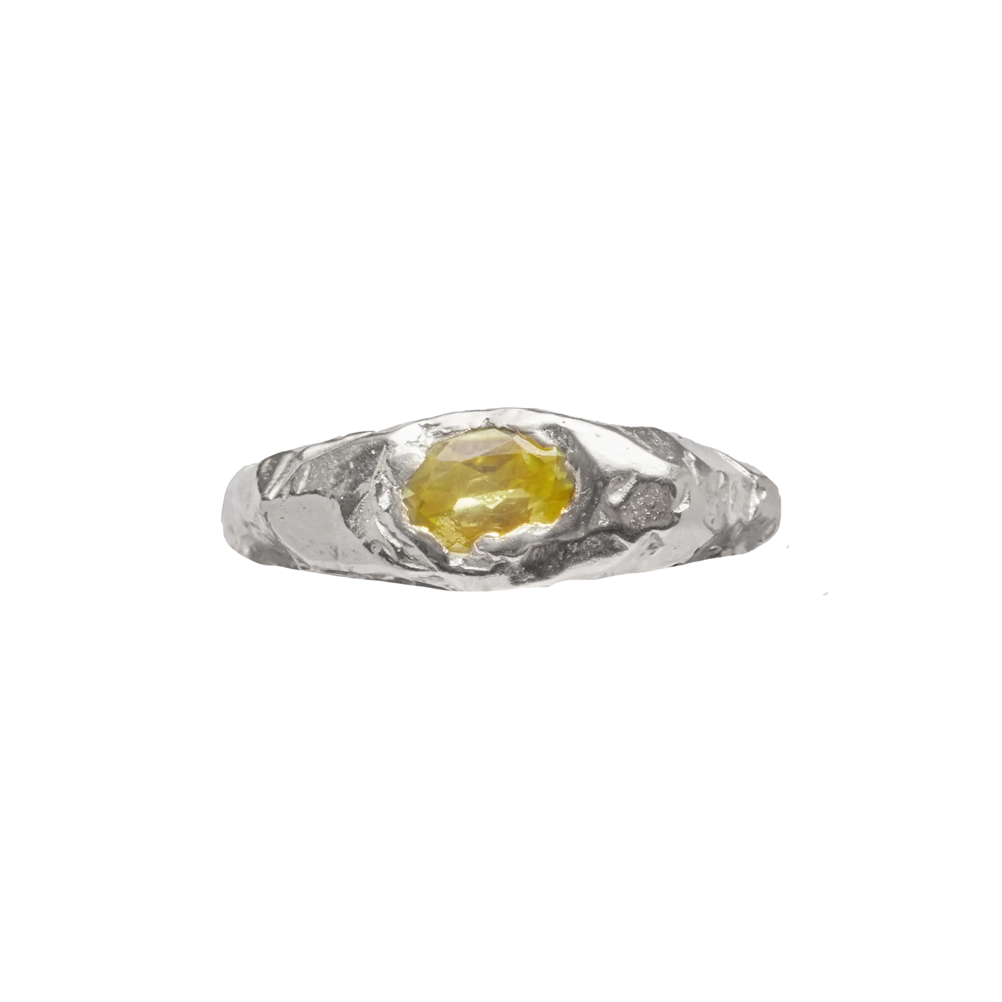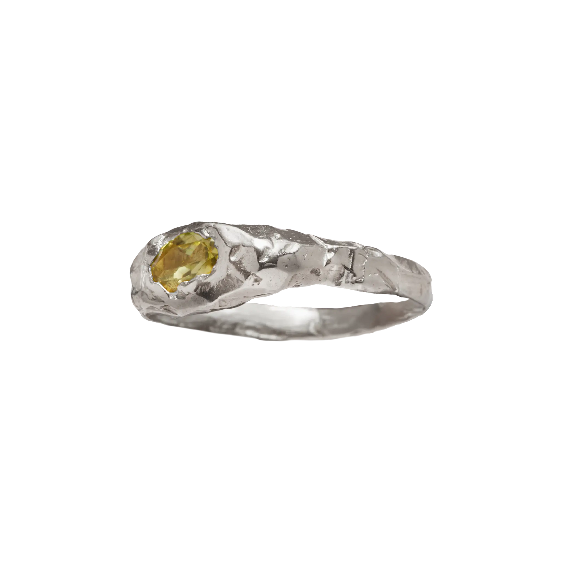 Polo Yellow, anillo artesanal de plata de ley 925 reciclada con piedra natural de cuarzo limón.
