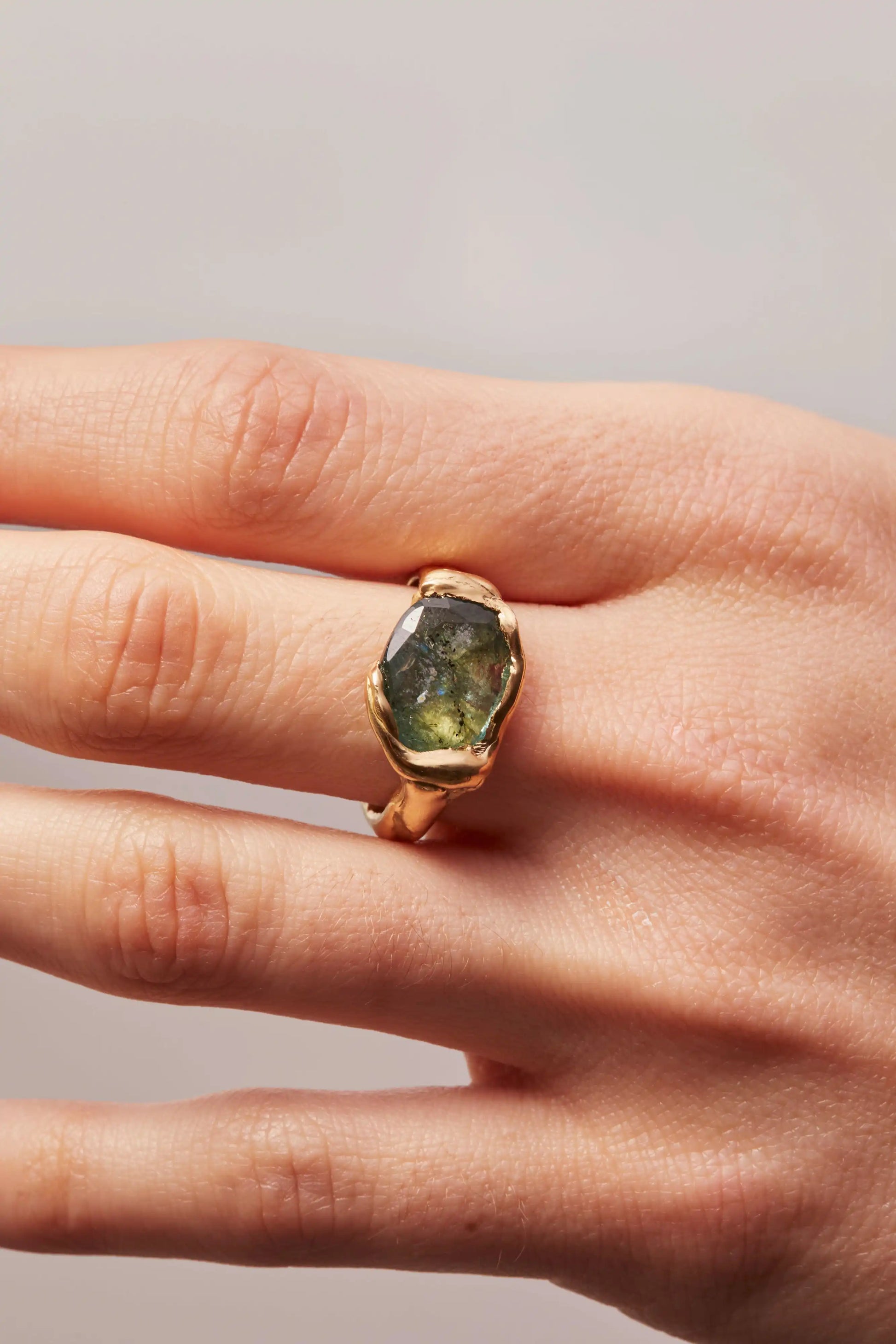 Anillo de oro sólido elaborado artesanalmente y engastado con una esmeralda única. Cada piedra ha sido cuidadosamente seleccionada para garantizar que no haya dos iguales. Una pieza diseñada para acompañarte a ti y a futuras generaciones.