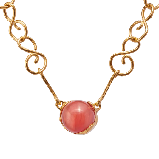 Néctar Uva, colgante artesanal bañado en oro con piedra natural de prehnita verde.