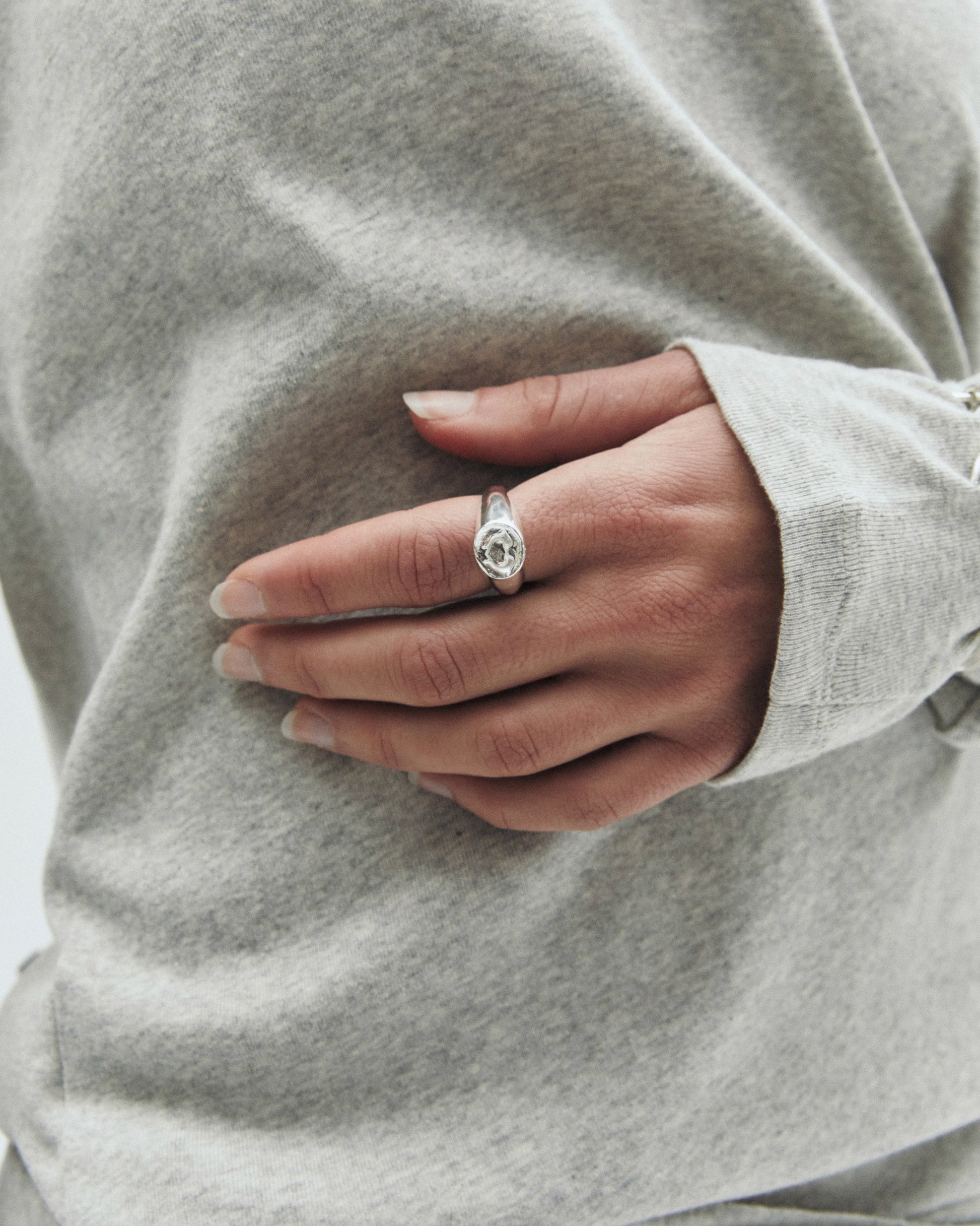 Beso 02, anillo artesanal de plata de ley 925 reciclada.