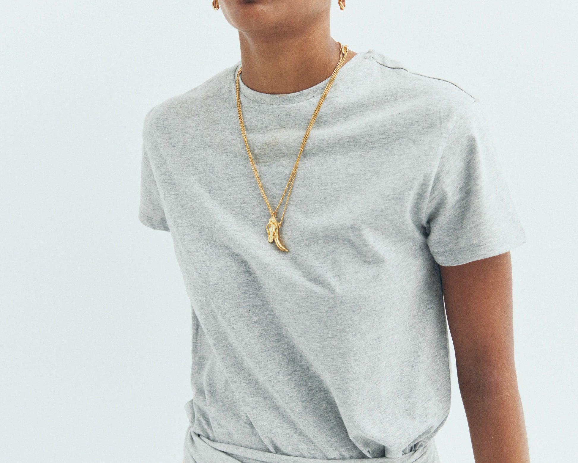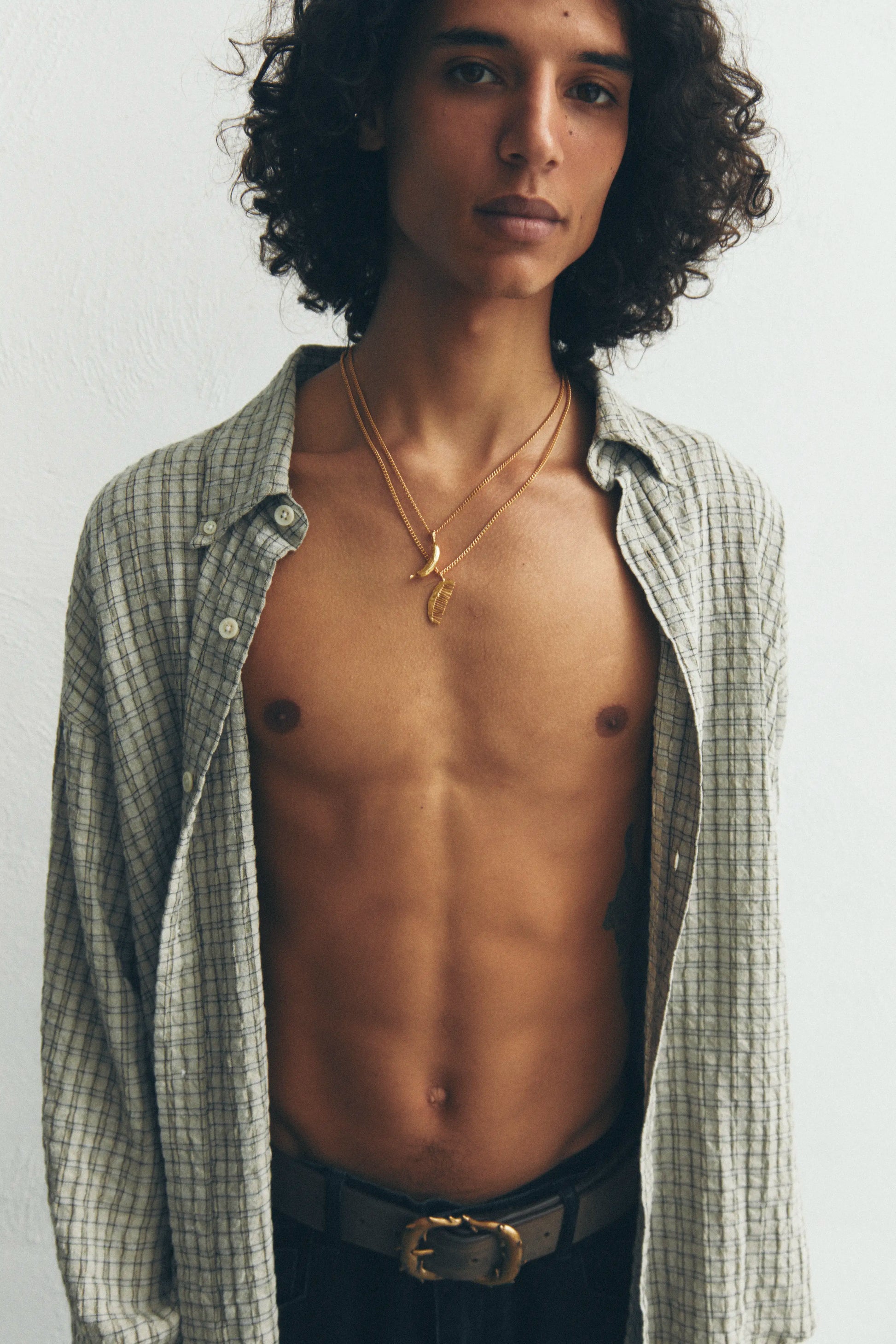 Plátano, colgante artesanal bañado en oro con piedra natural de ónix rojo.
