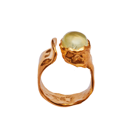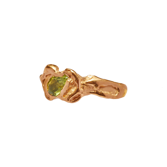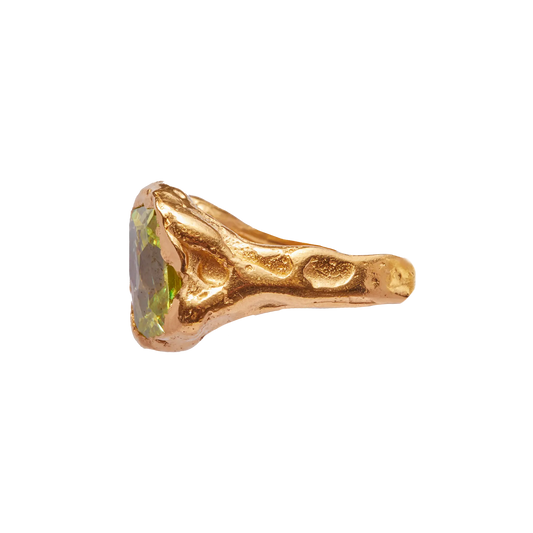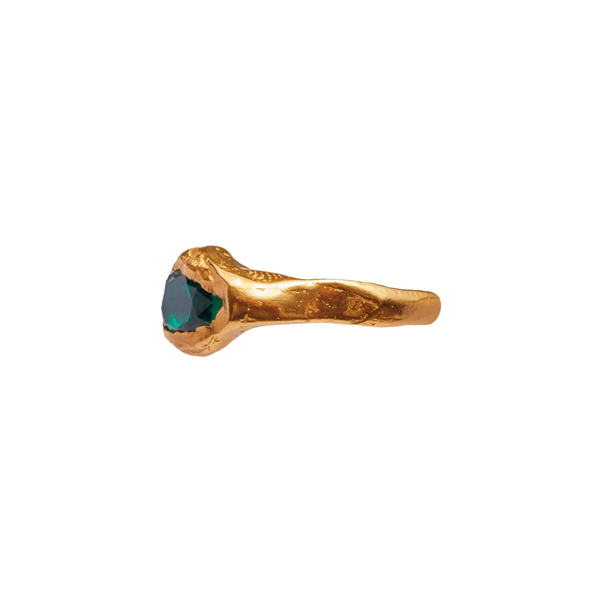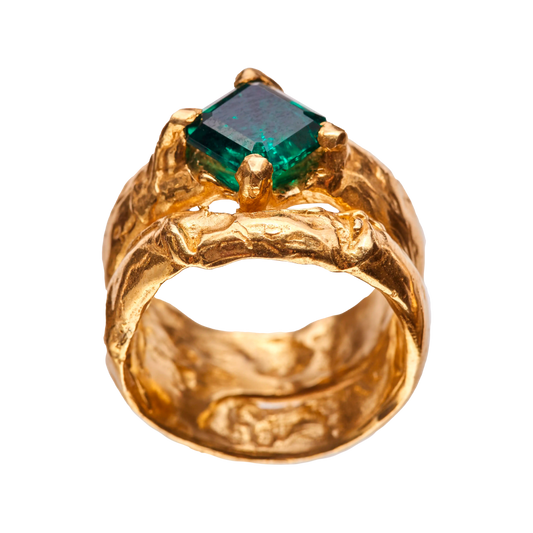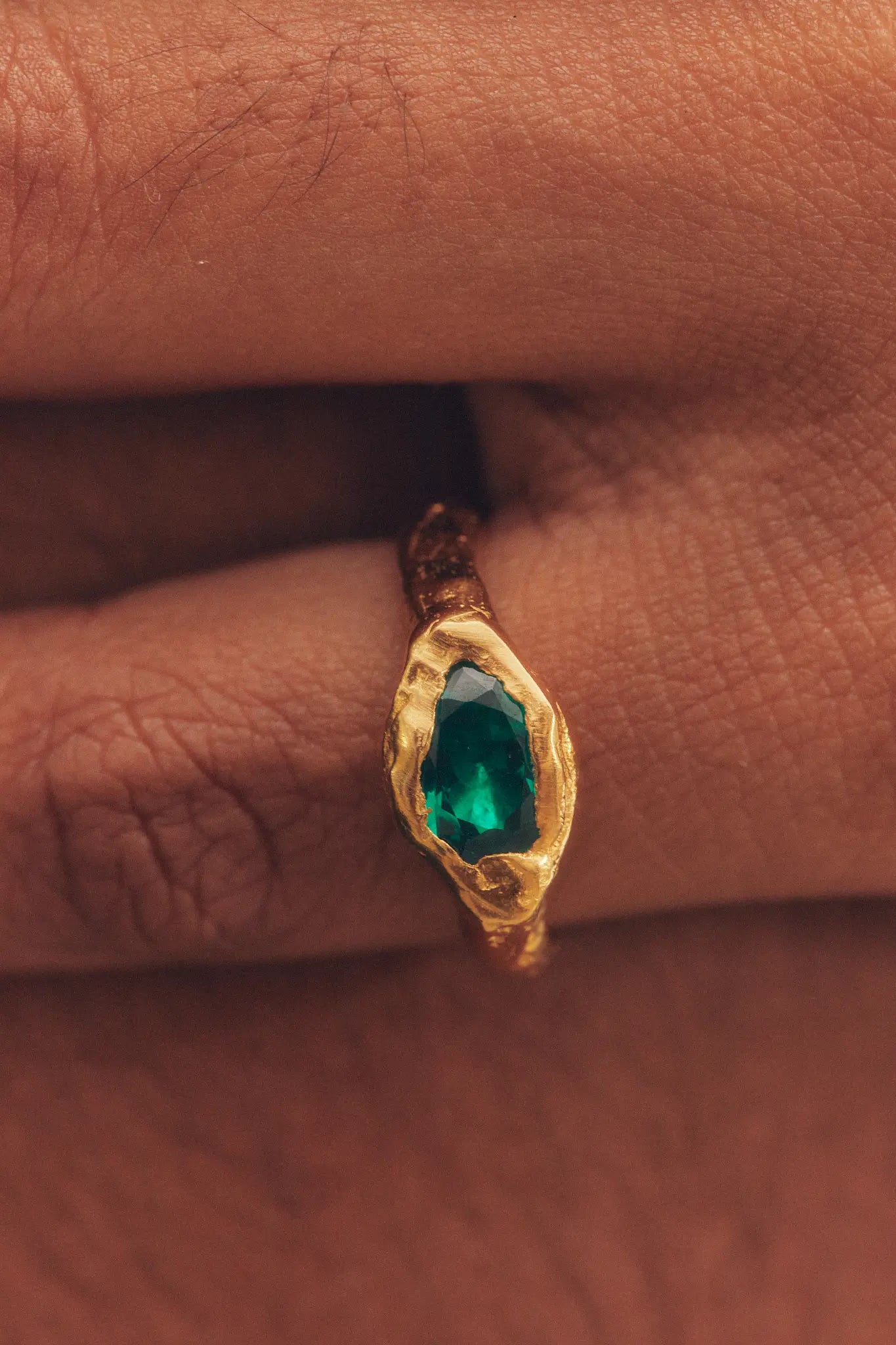 Faro Green, anillo artesanal de plata de ley 925 reciclada bañada en oro con piedra Cz de esmeralda verde.