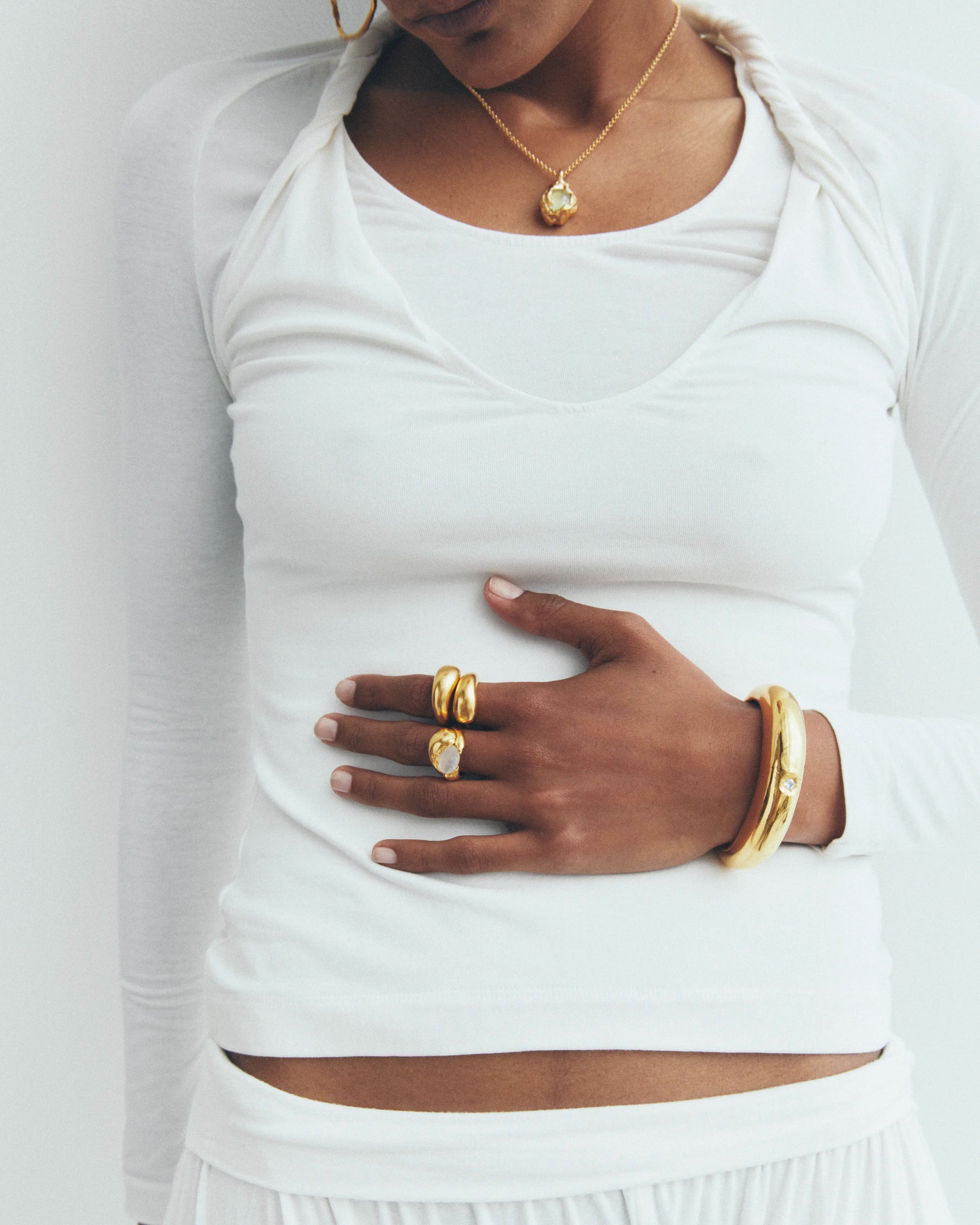 Delfina Bracelet, pulsera artesanal bañada en oro con piedra de circonita cúbica azul.