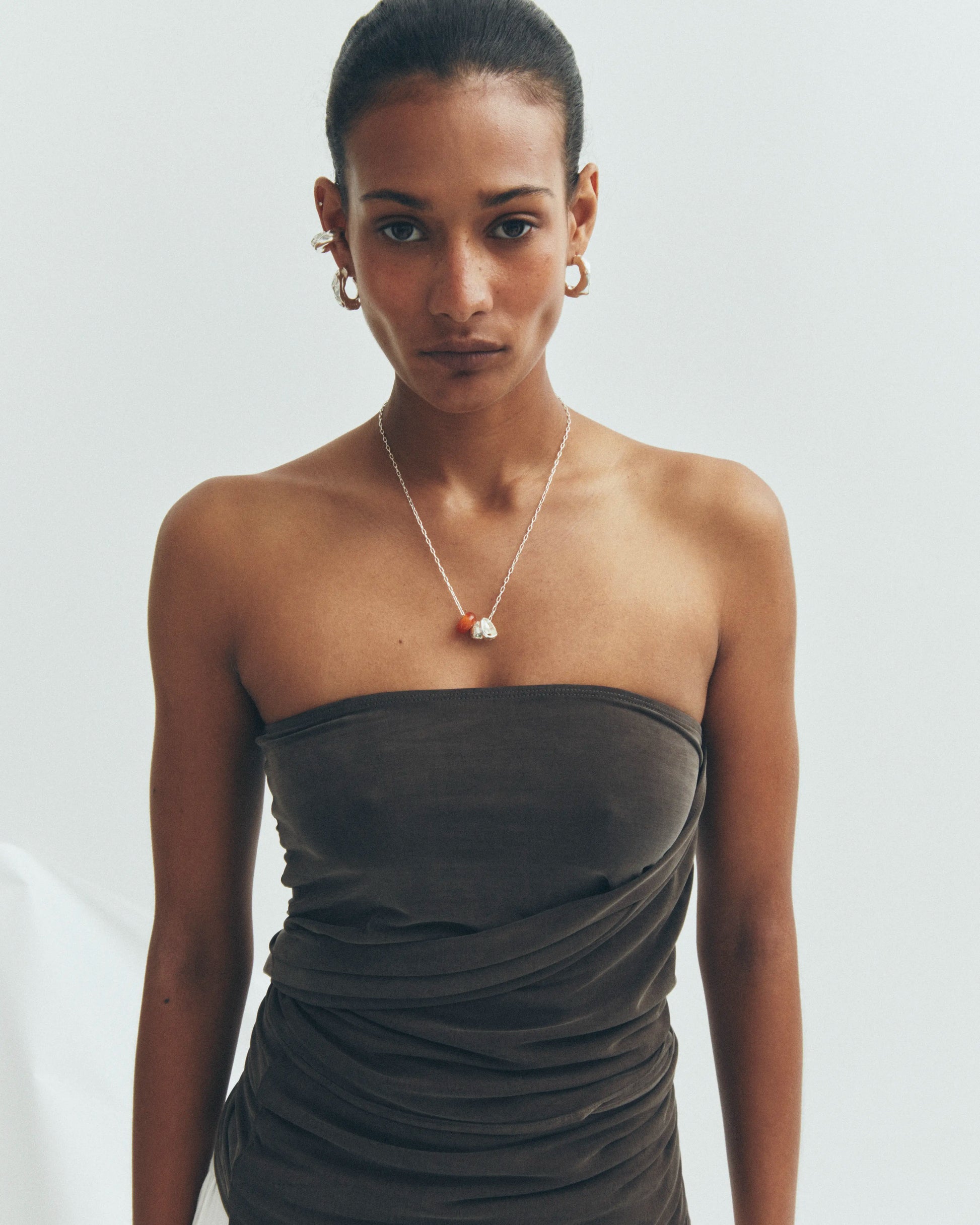 con cuenta de ágata naranja, circonita cúbica azul y piedras de granate rosa.