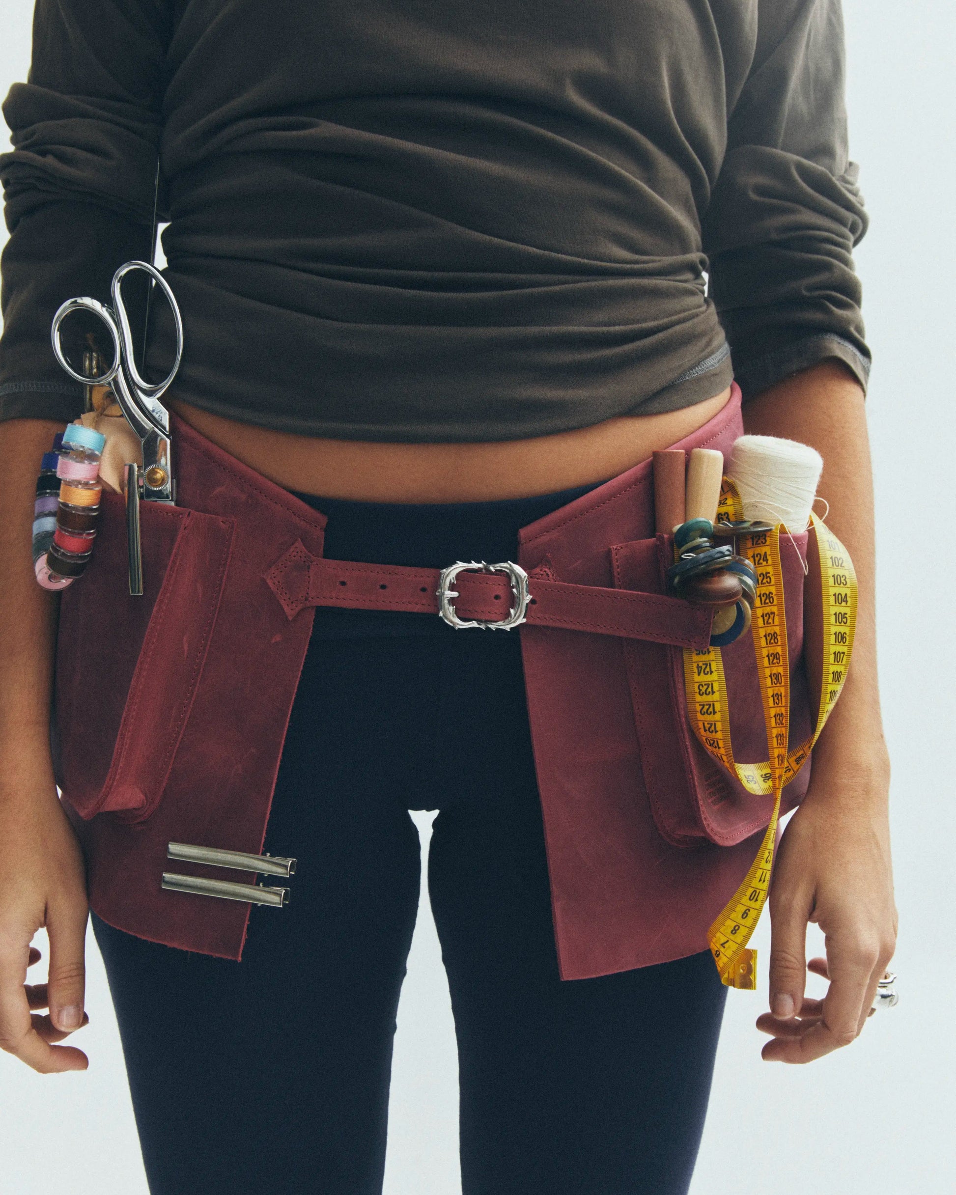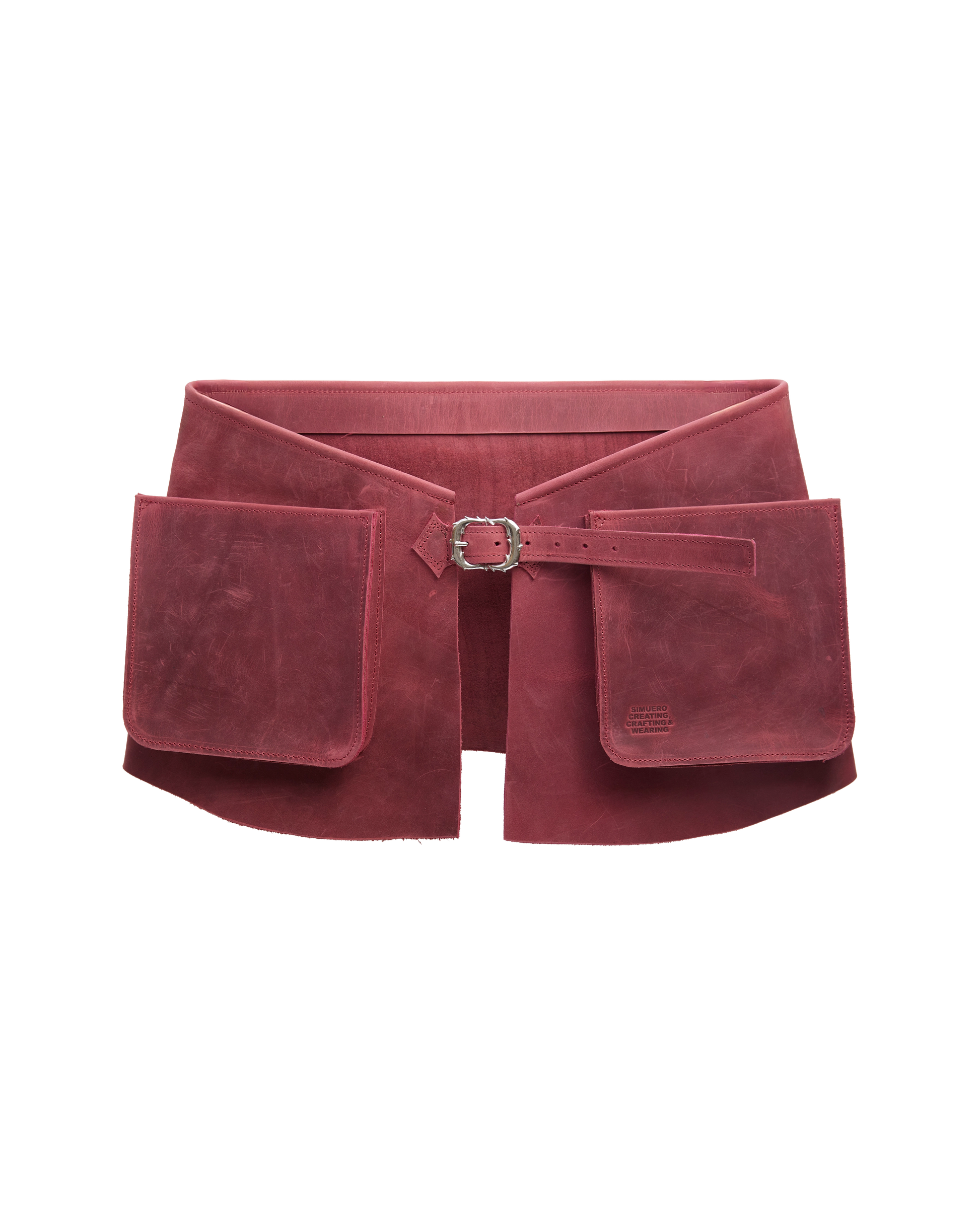 Espina Apron Fucsia, cinturón artesanal de cuero con hebilla escultórica de plata de ley 925 reciclada, acabada con una capa extra de rodio para aportar mayor durabilidad y brillo. Diseñado para llevarse a media cadera o cintura baja, ajustándose con naturalidad al cuerpo. Confeccionado con materiales de origen responsable en colaboración con un taller local especializado en cuero. Diseñado y fabricado íntegramente en Valencia, España.