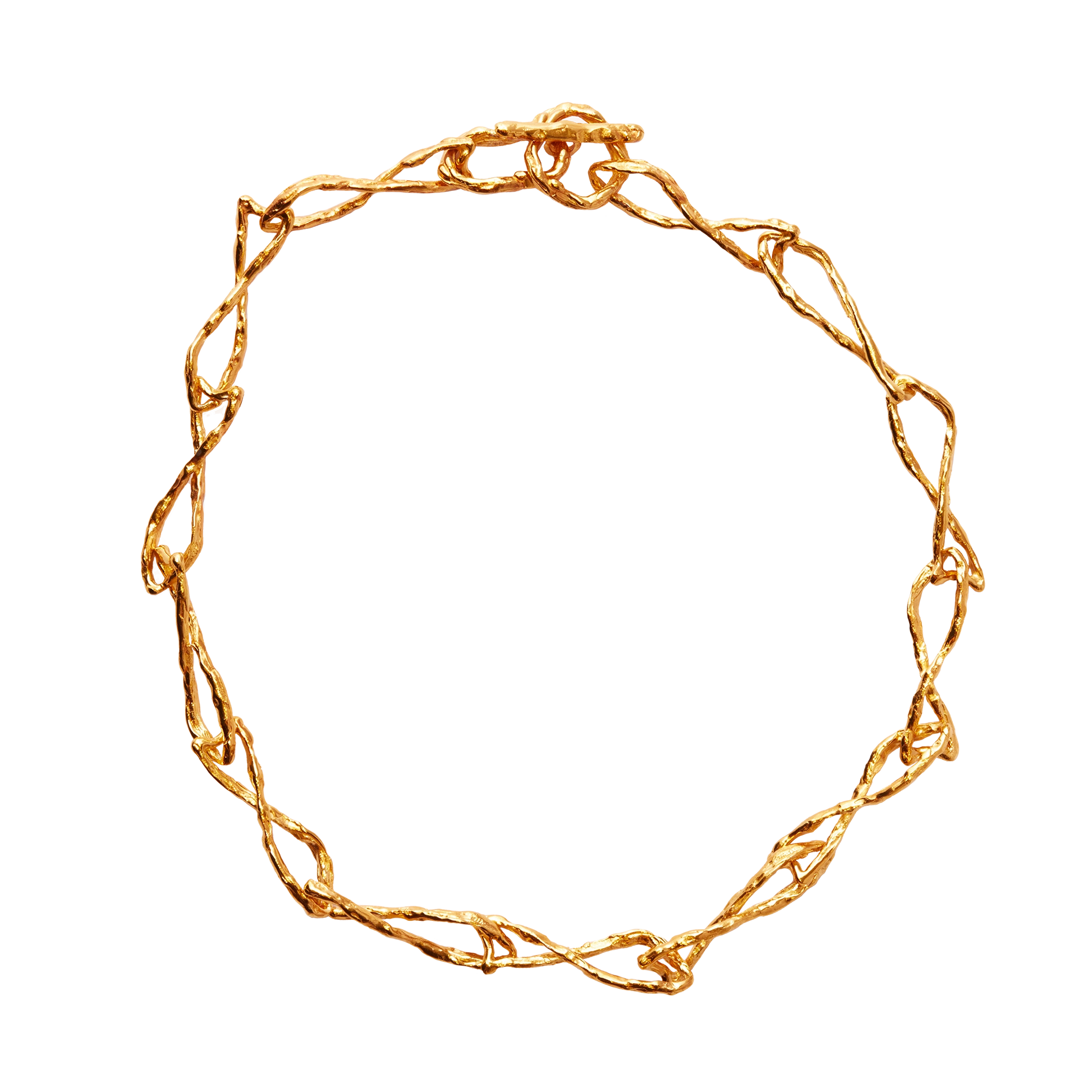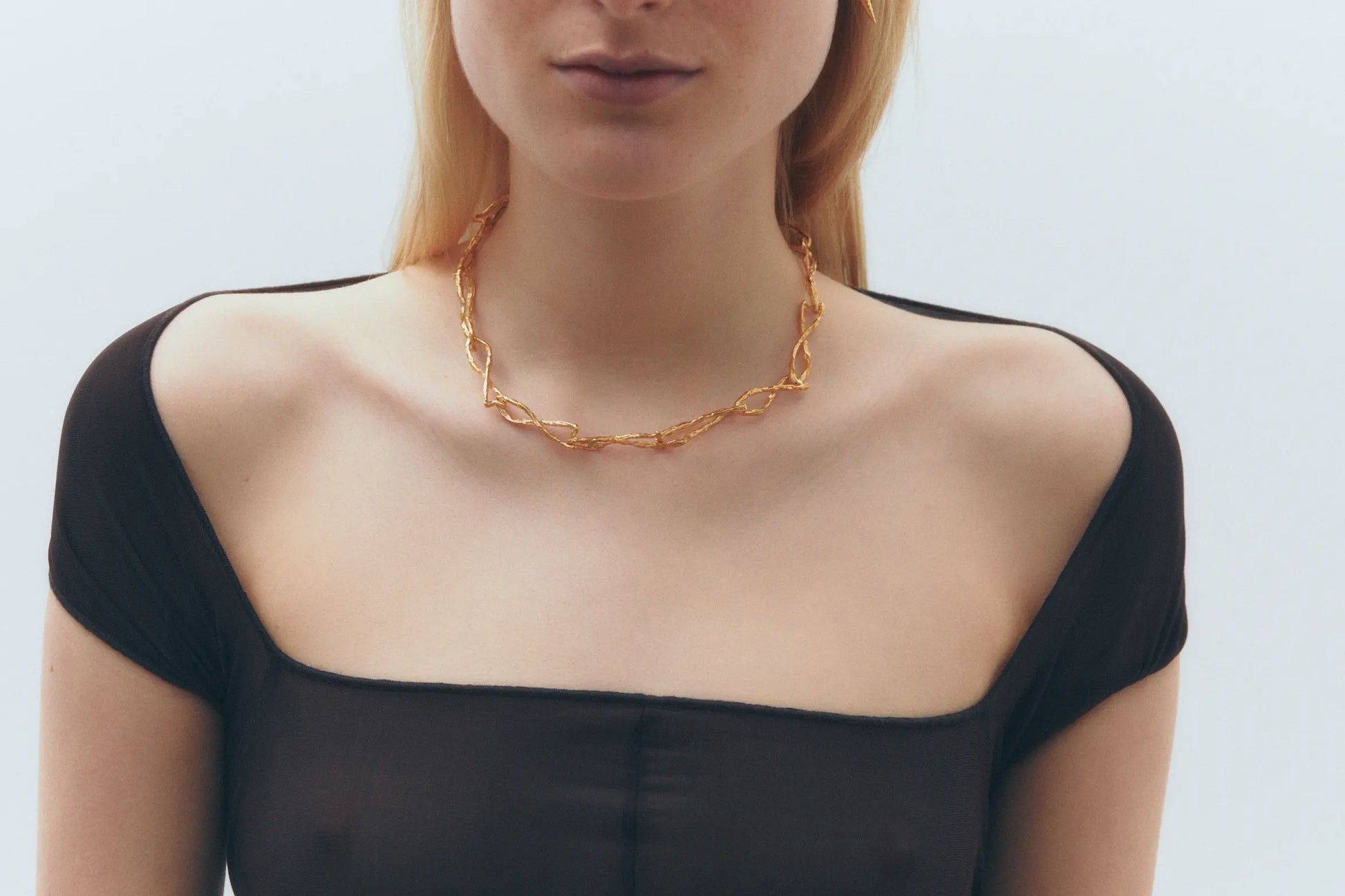 Sardina Choker, gargantilla artesanal bañada en oro de eslabones en forma de pez.