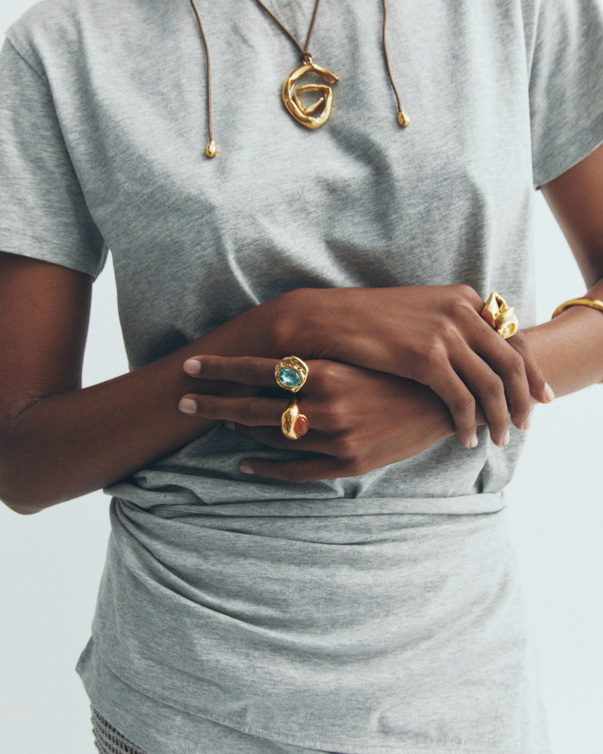 Agosto, anillo artesanal de plata de ley 925 reciclada bañado en oro con piedra natural de ágata.