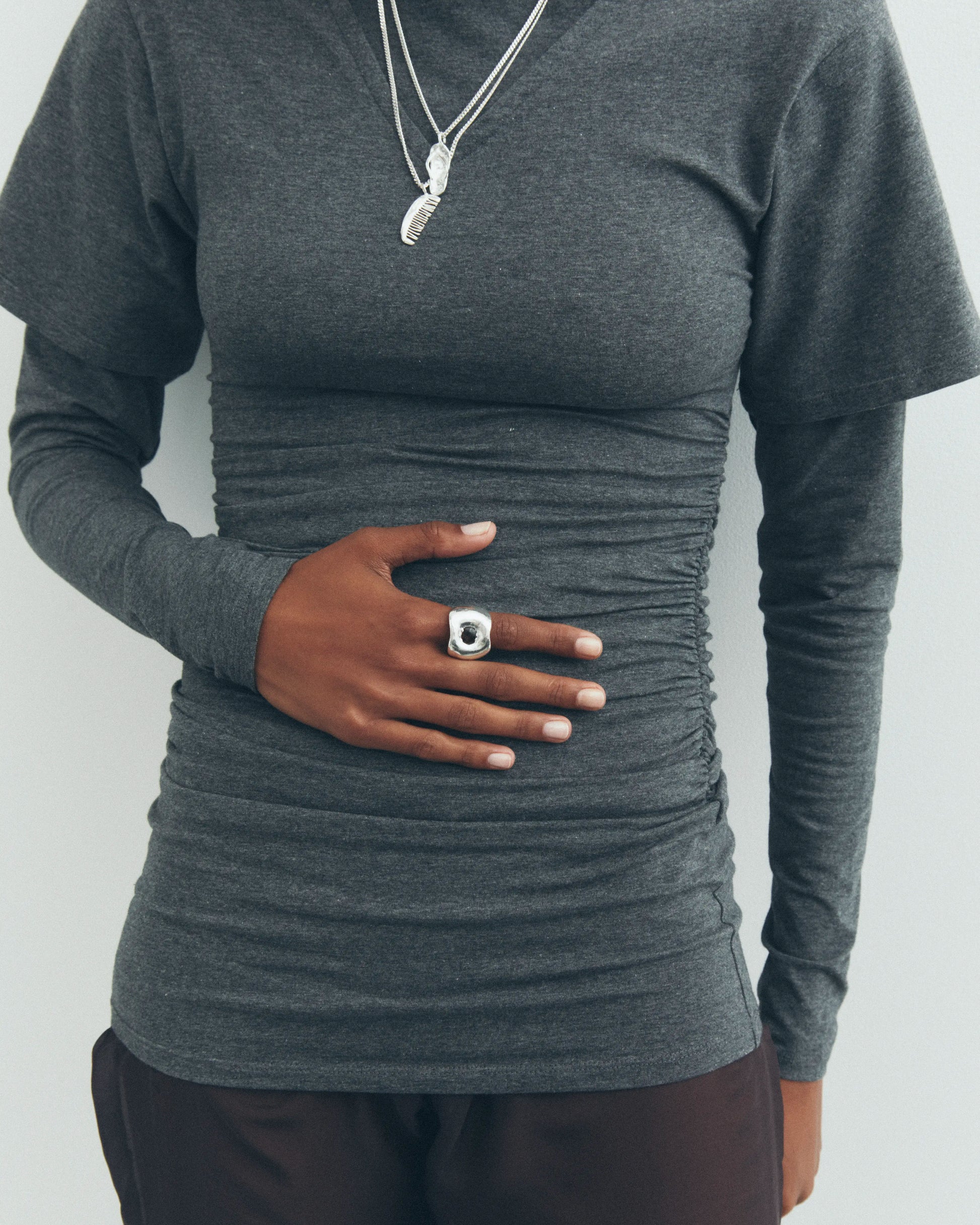 Moma Brown, anillo artesanal de plata de ley 925 reciclada con piedra natural de cuarzo ahumado.