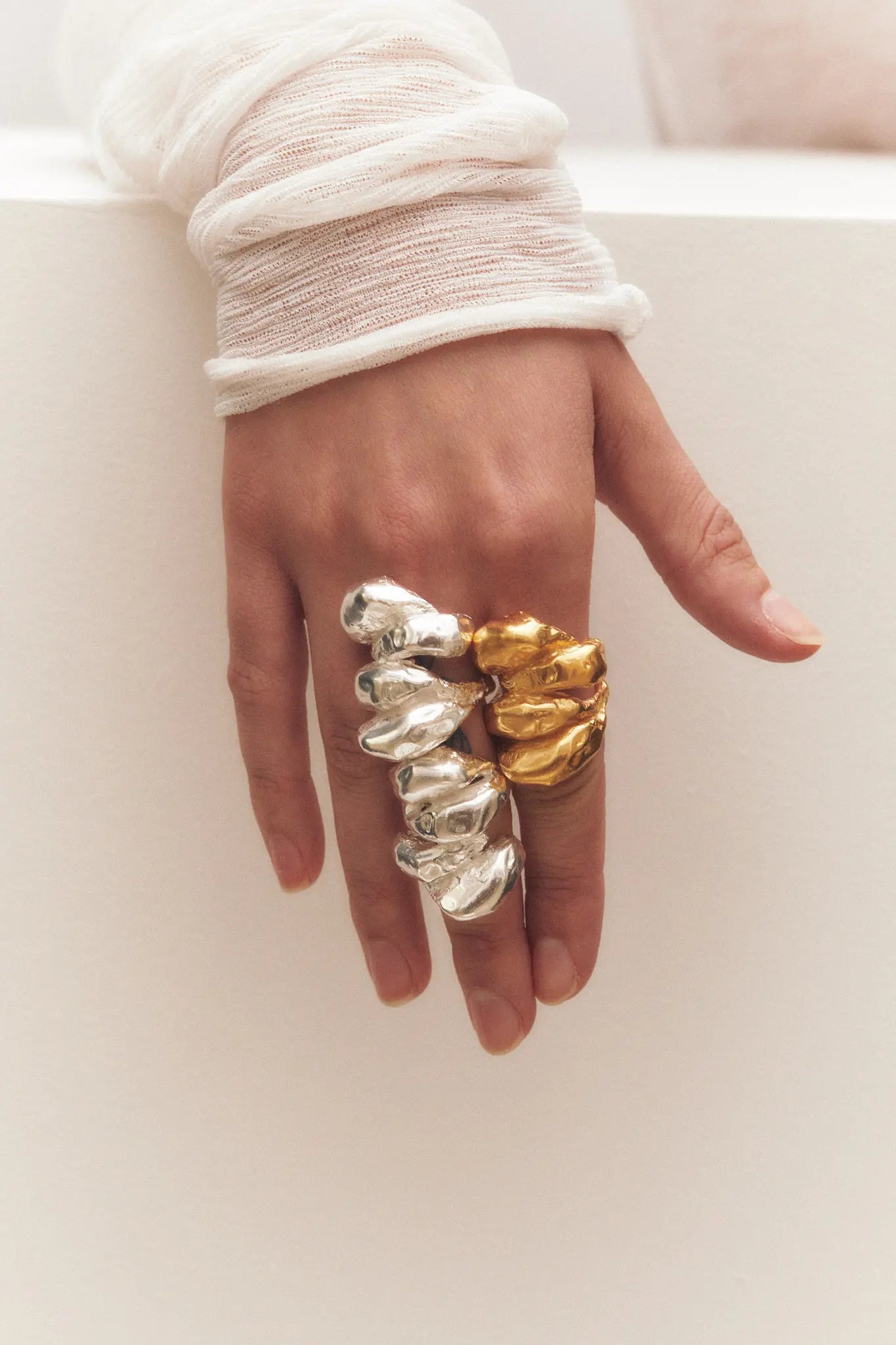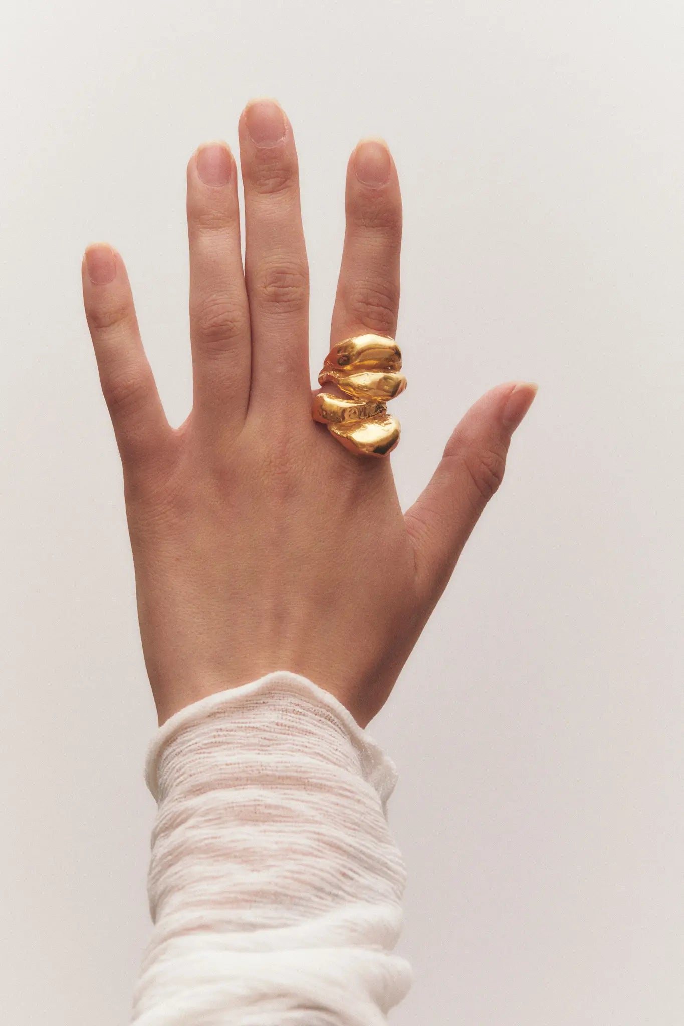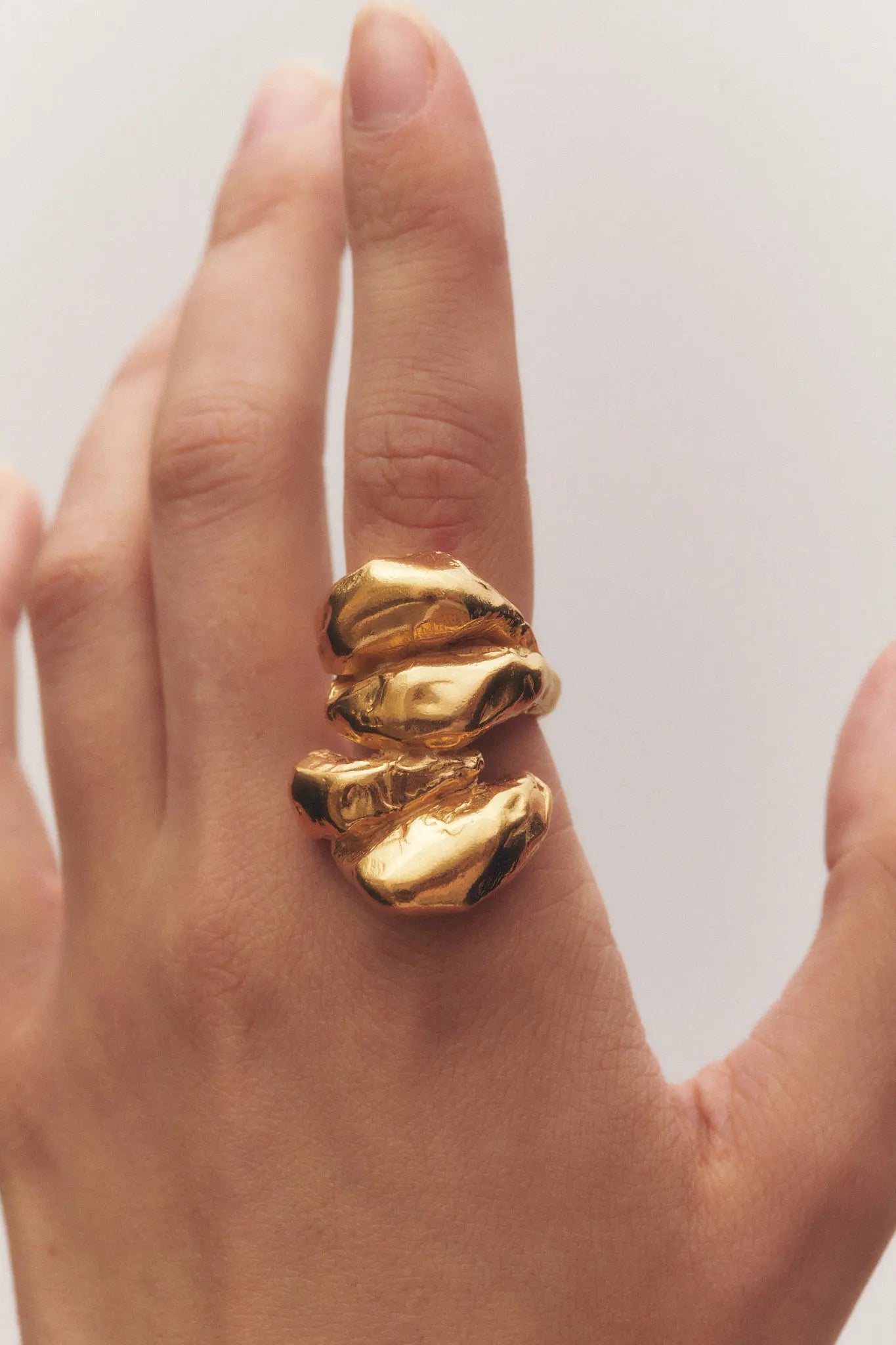 Agnes, anillo artesanal de plata de ley 925 reciclada bañado en oro.