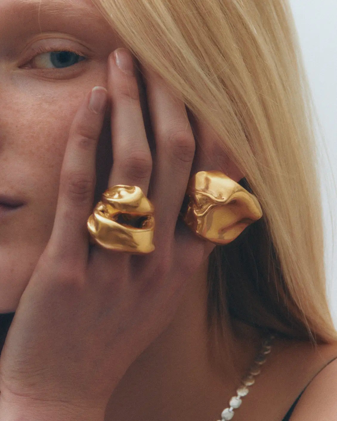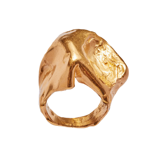 Espejo, anillo artesanal de plata de ley 925 reciclada bañada en oro.