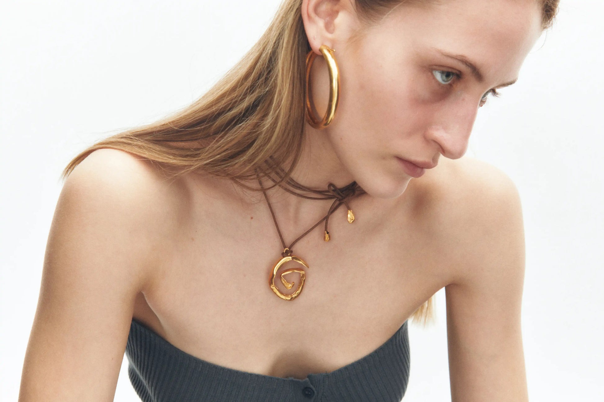 Espiral, colgante artesanal bañado en oro.