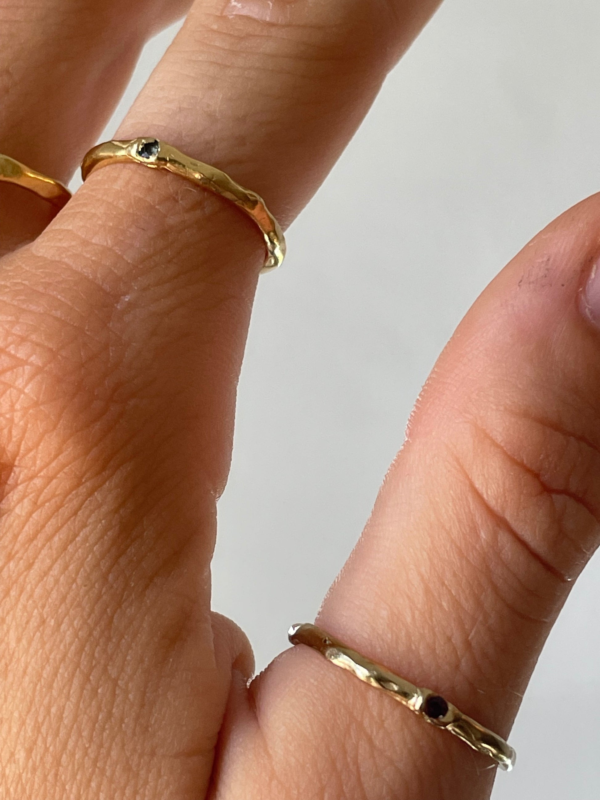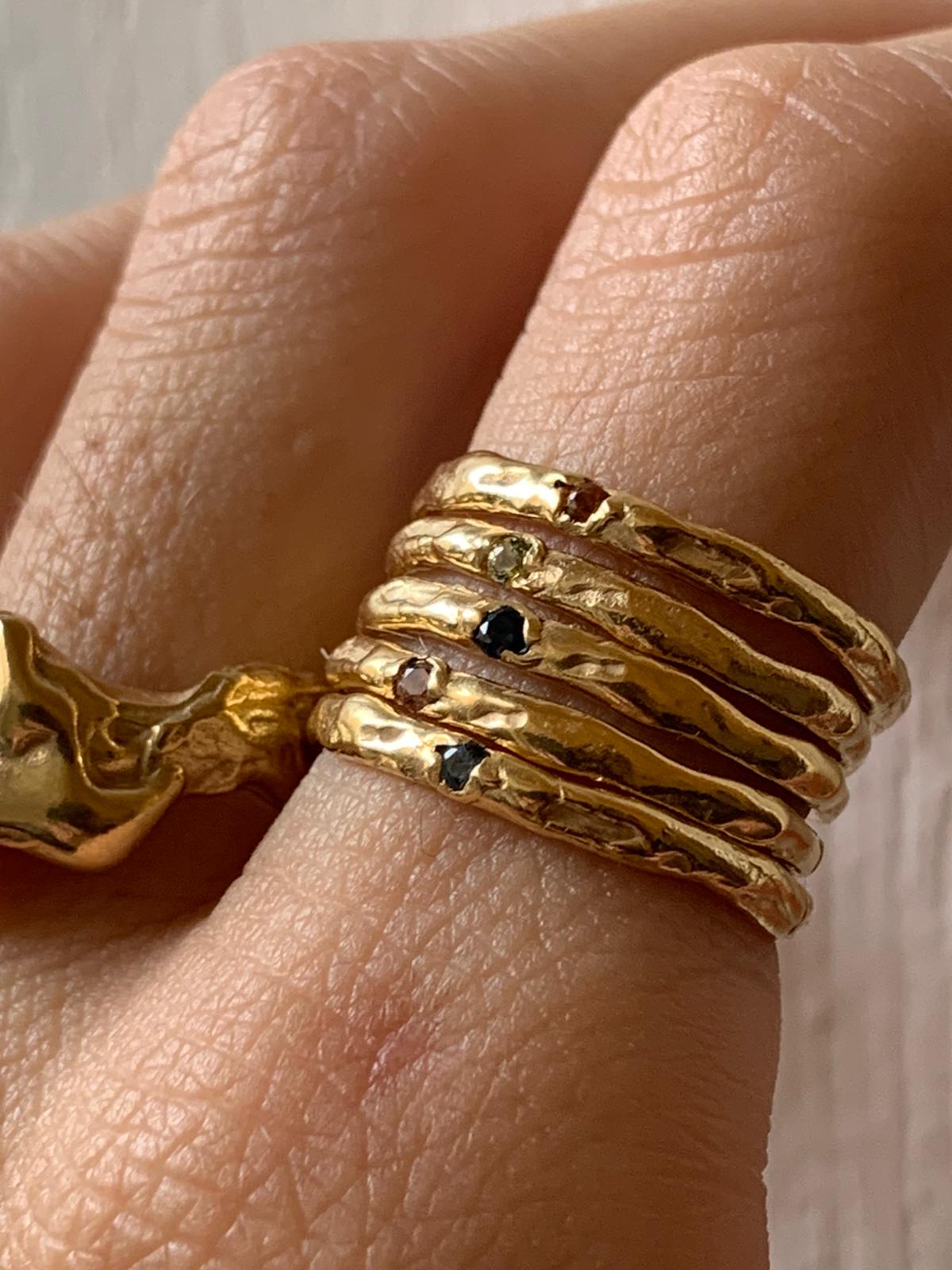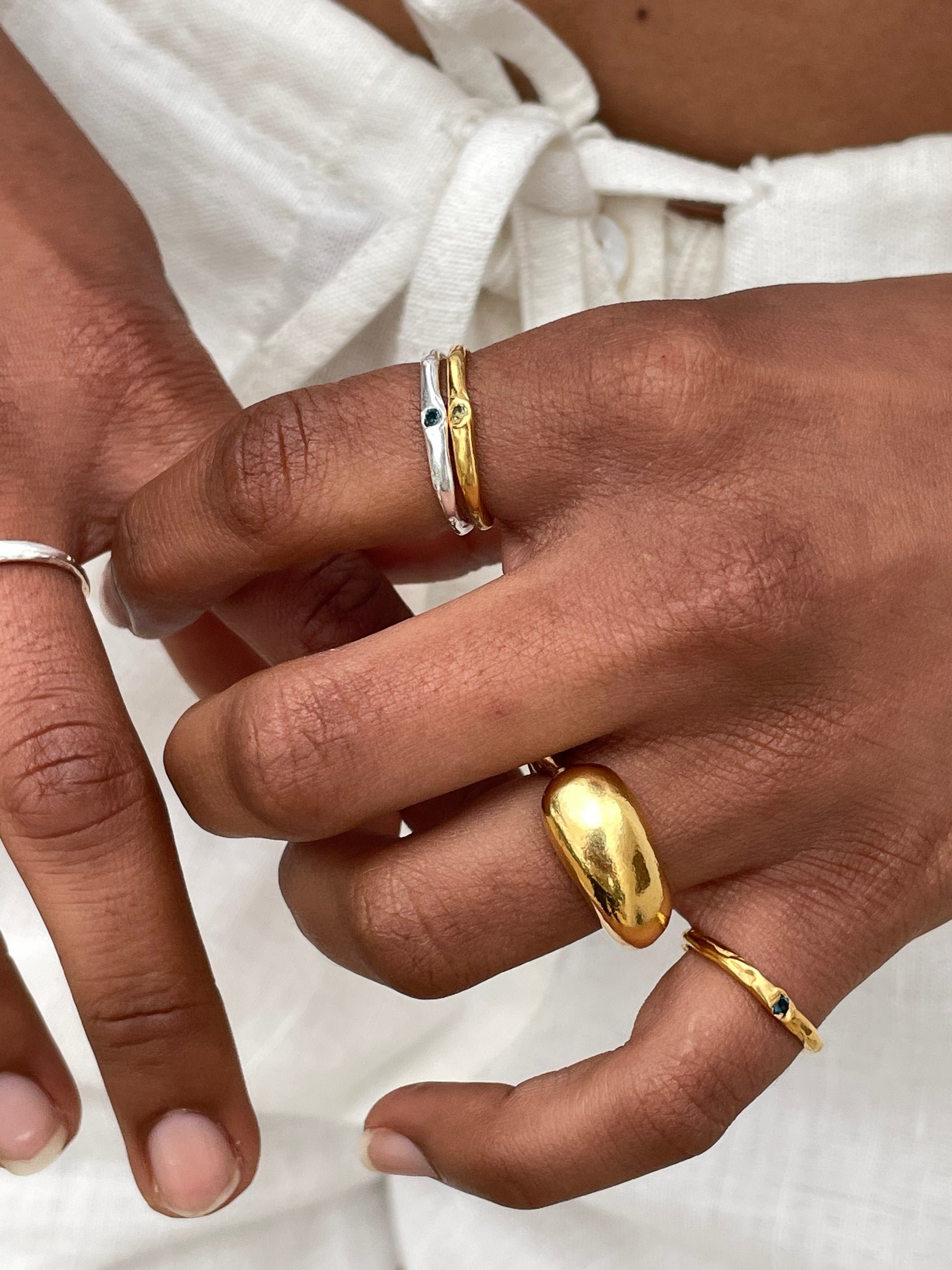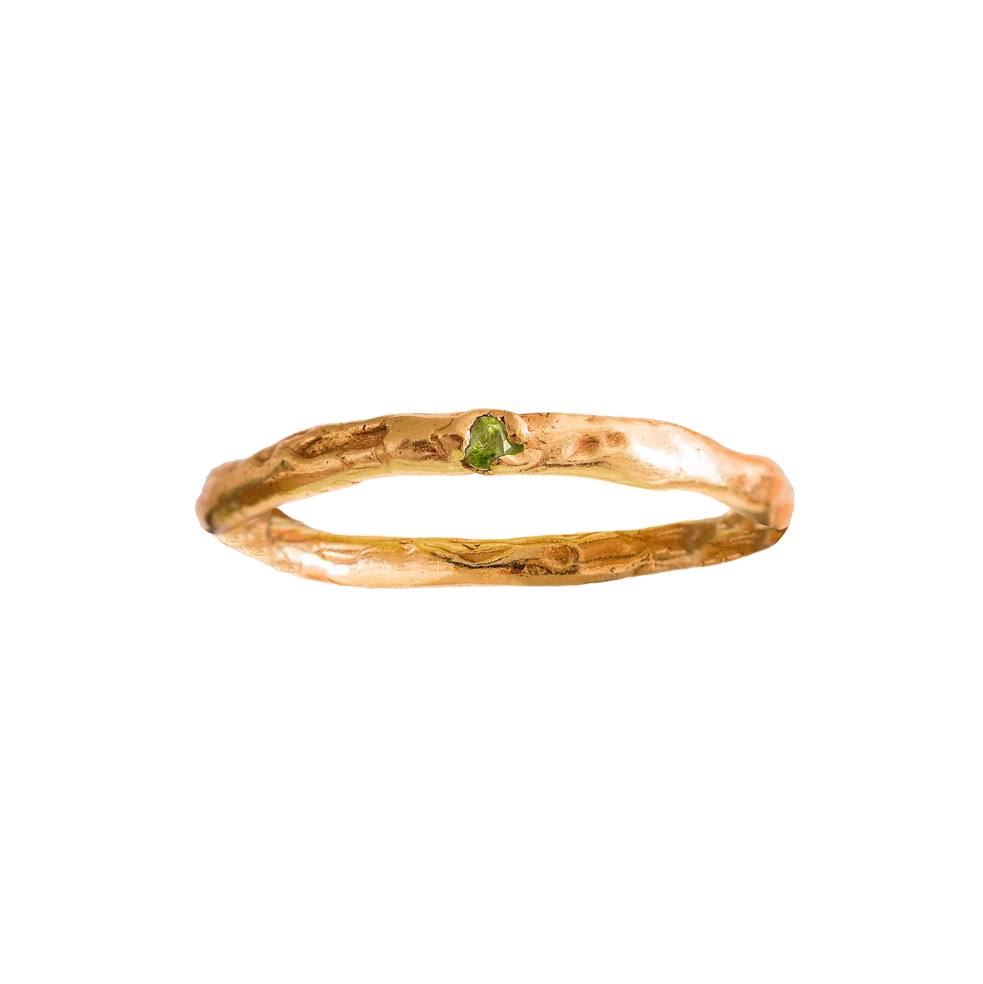 Labanda Green, anillo artesanal de plata reciclada bañada en oro con piedra natural de peridoto verde.