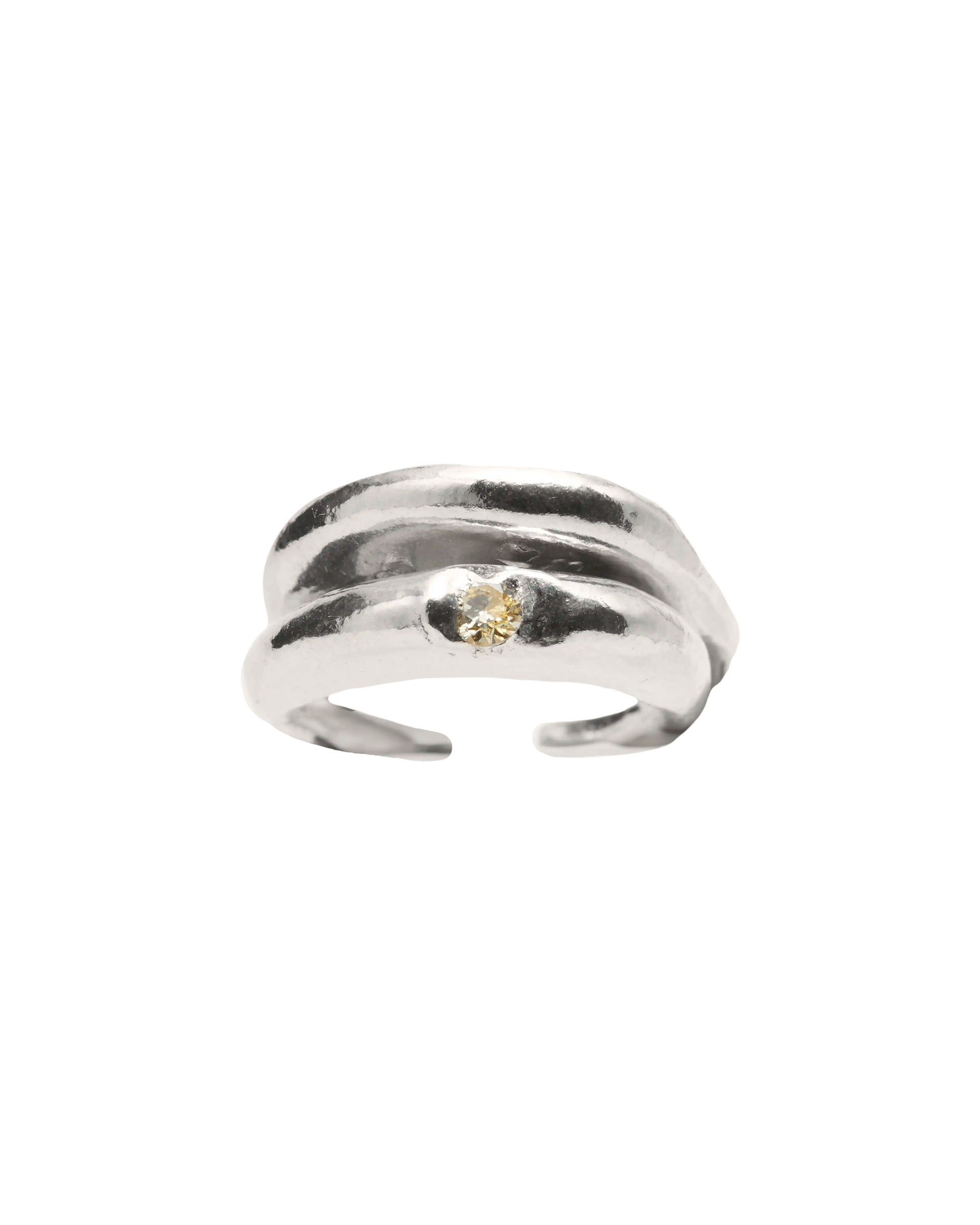 Sol y Sombra Toe, set de dos anillos artesanales para el pie de plata de ley 925 reciclada con piedra de circonita cúbica amarillo limón. Talla única.