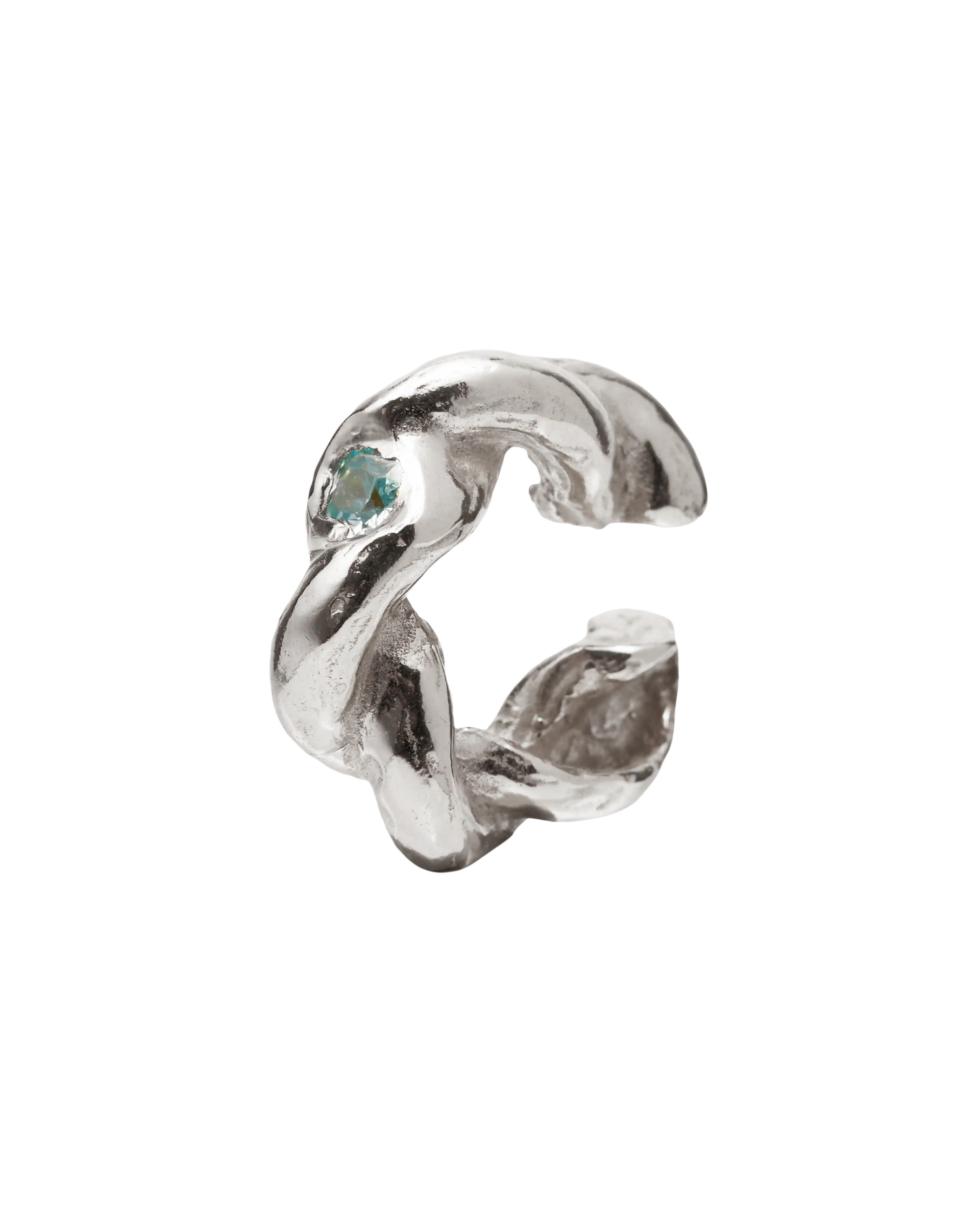 Trenza Ear Cuff, pendiente artesanal de plata de ley 925 reciclada con piedra de circonita cúbica azul. Este pendiente se vende por unidad.