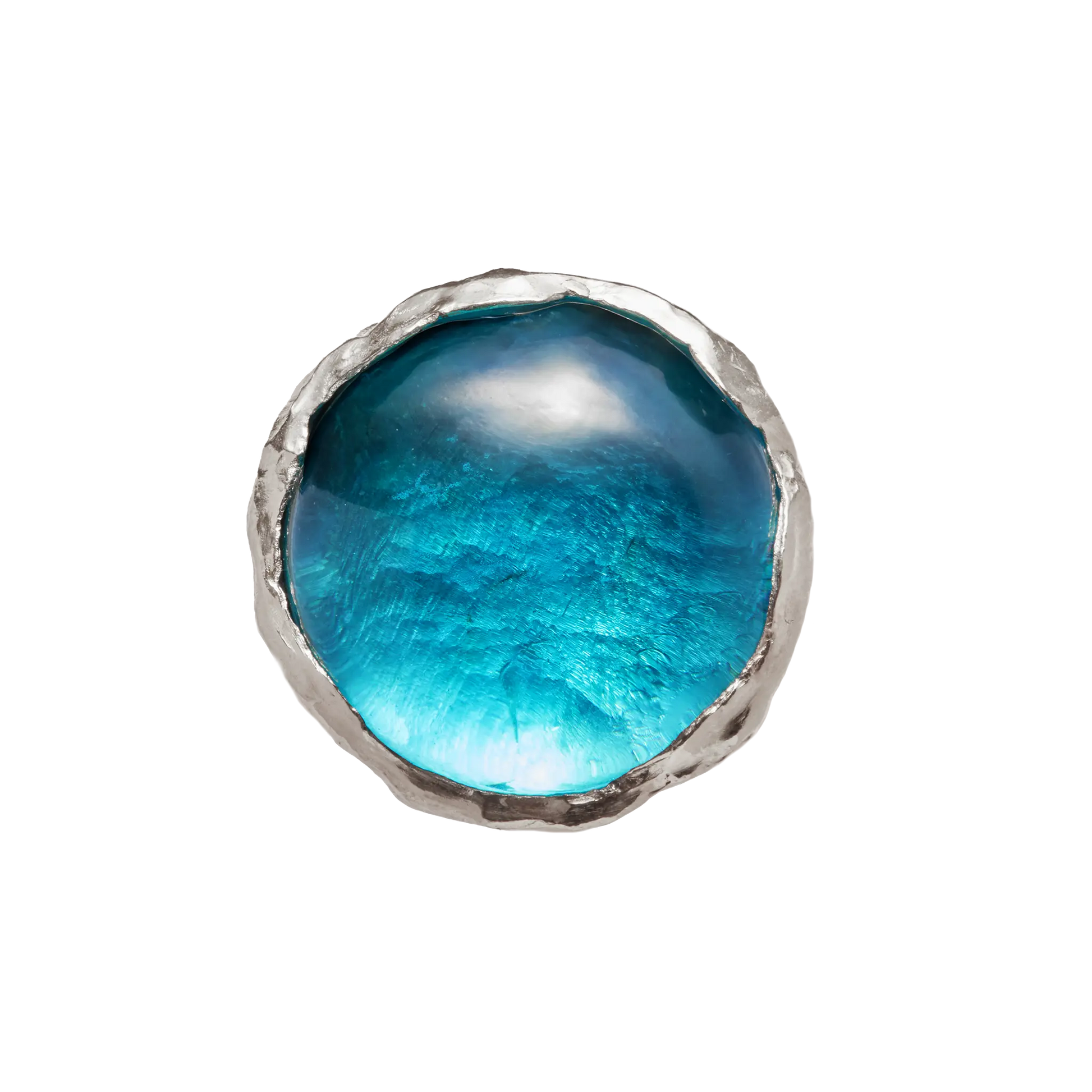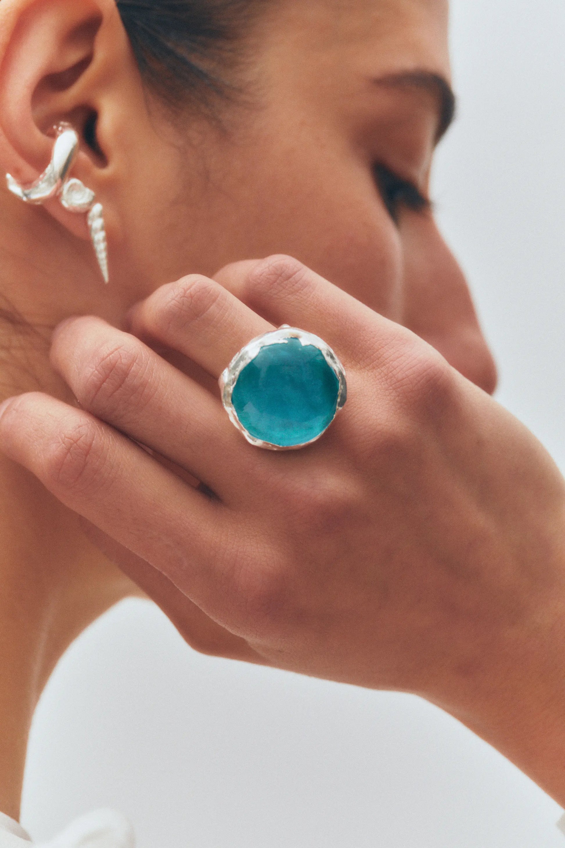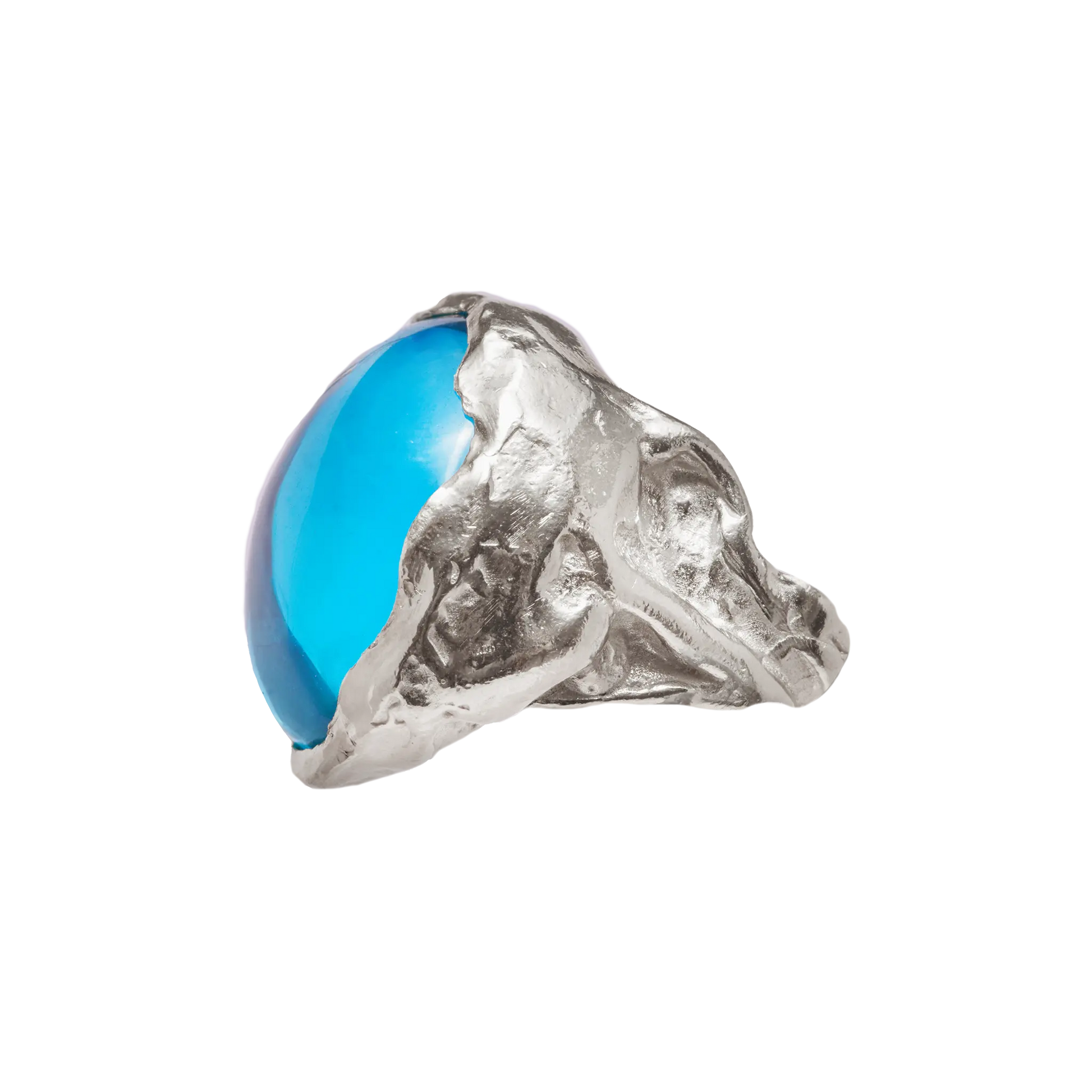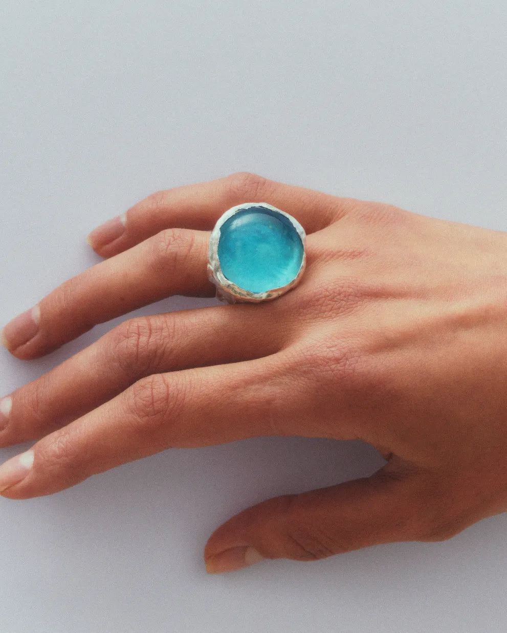 Atolón Blue, handmade recycled 925 sterling silver ring with Aqua glass stone.
