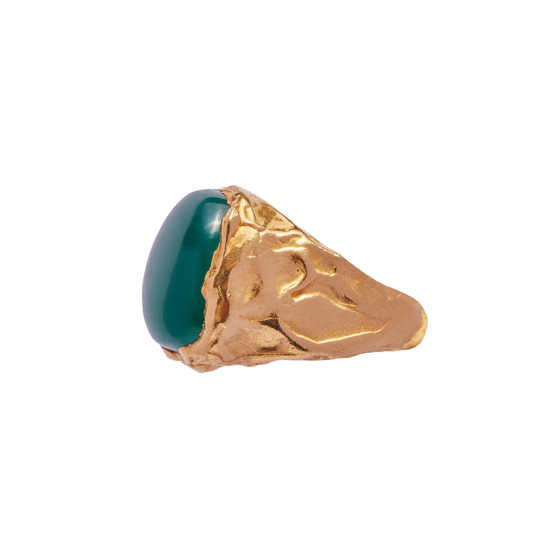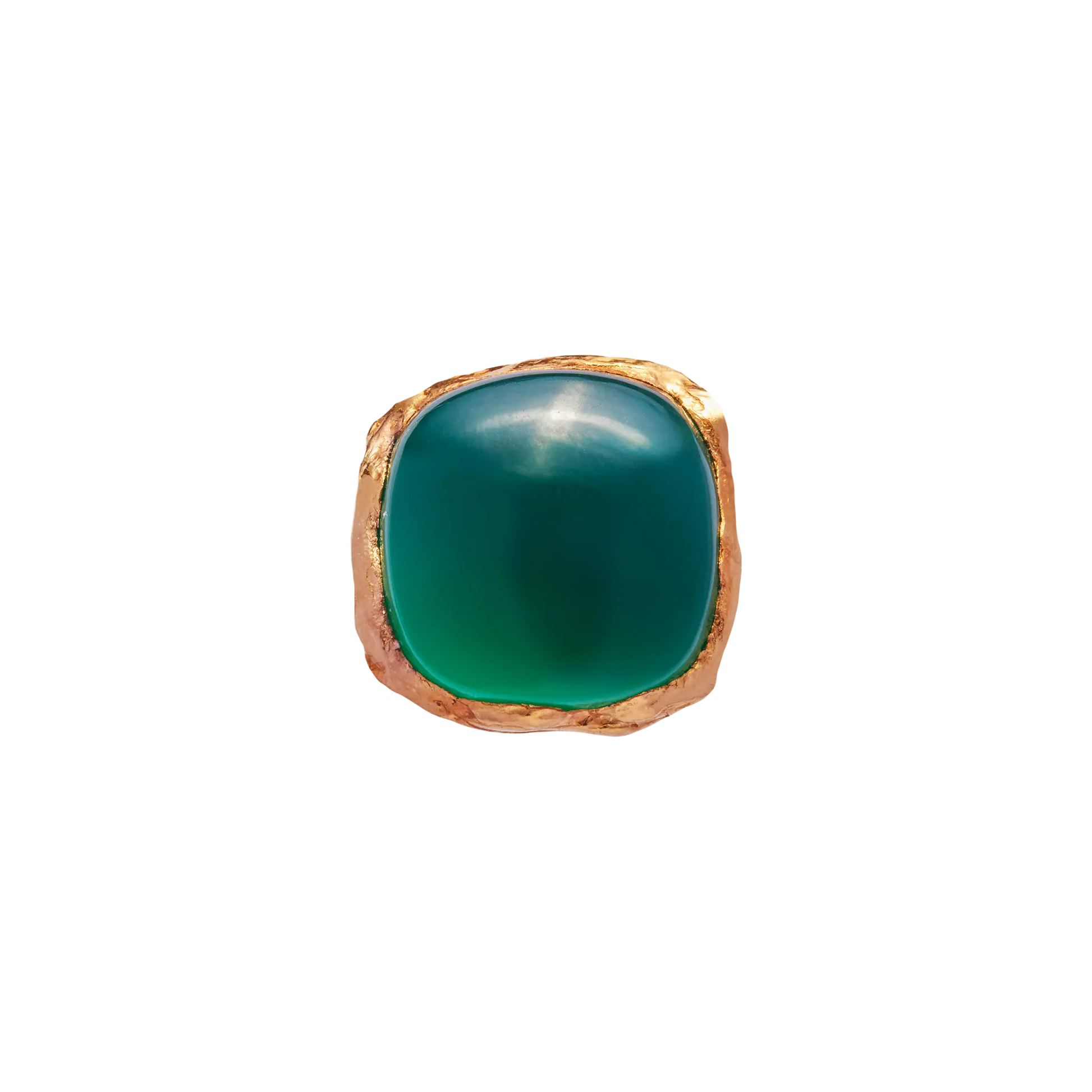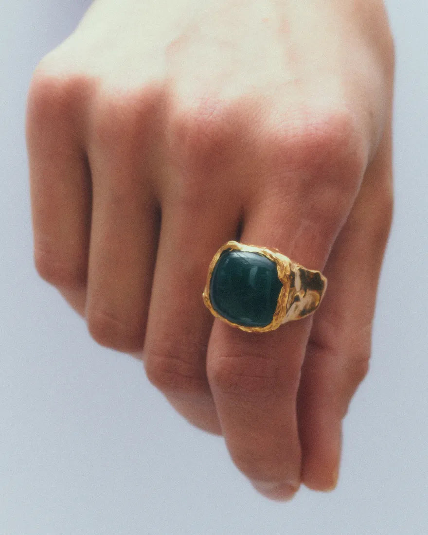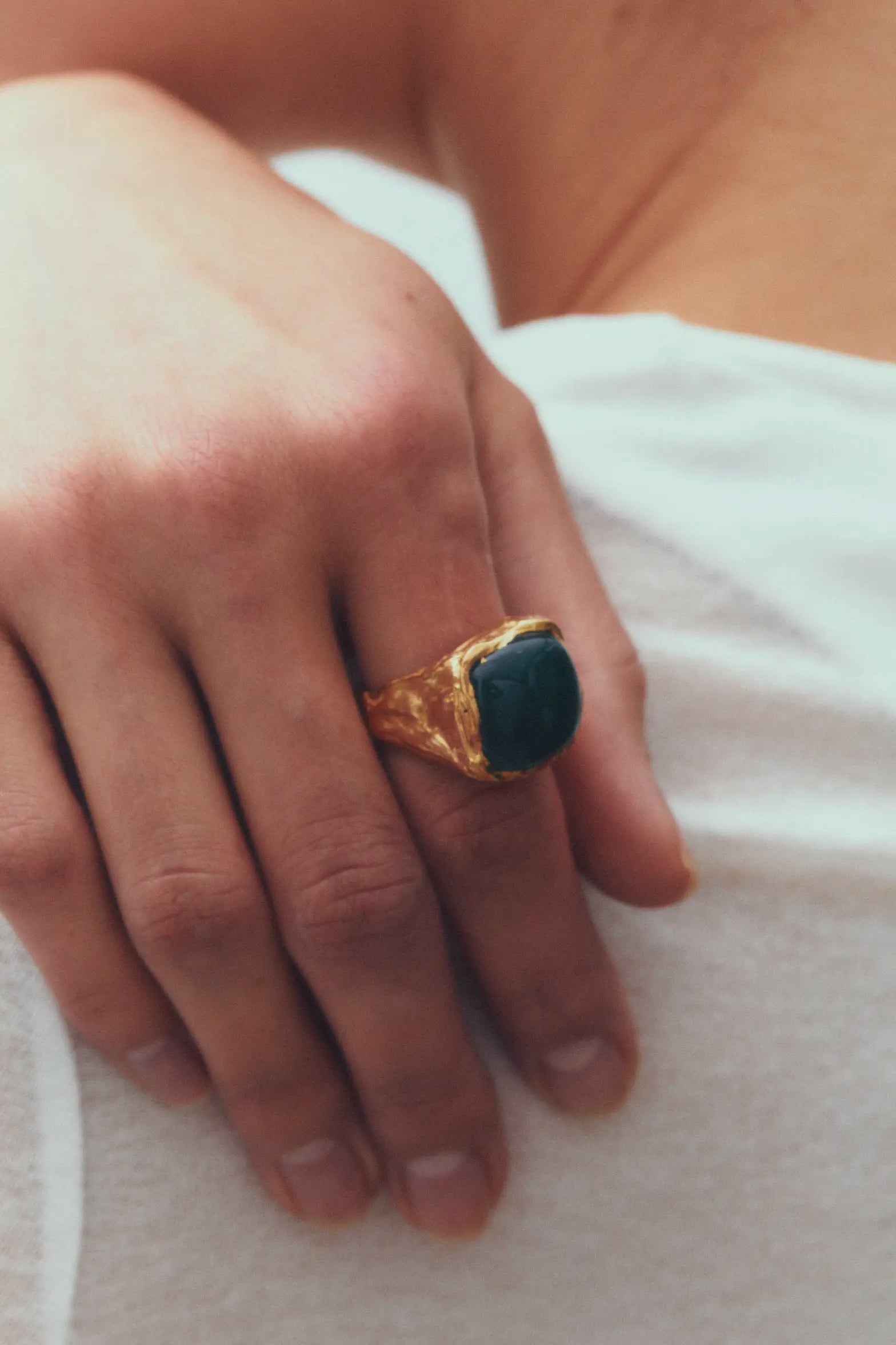 Boya Green, handmade gold plated recycled 925 sterling silver ring with green onyx natural stone. Los Peces Collection.