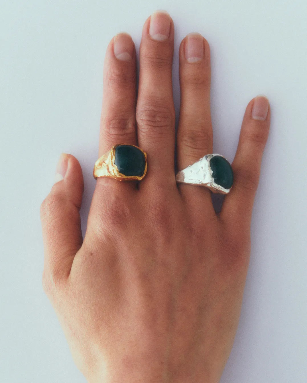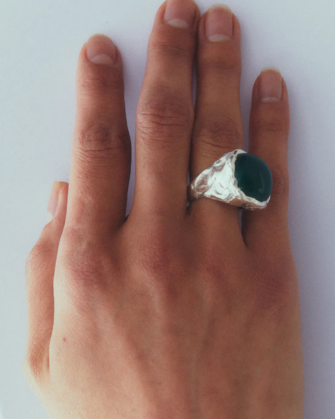 Boya Green, handmade recycled 925 sterling silver ring with green onyx natural stone.