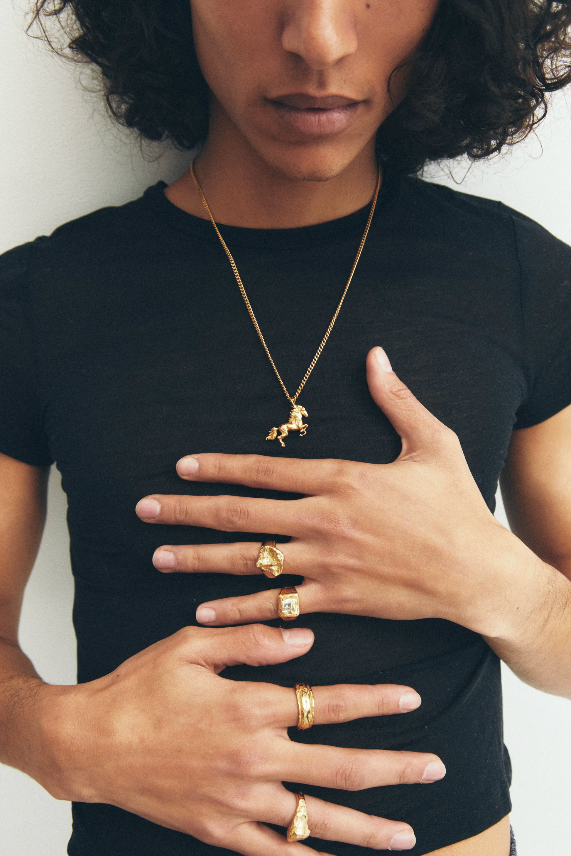 Caballo, handmade gold plated necklace with natural Blue Topaz, Green Peridot, Orange Citrine and Rose Quartz stones.