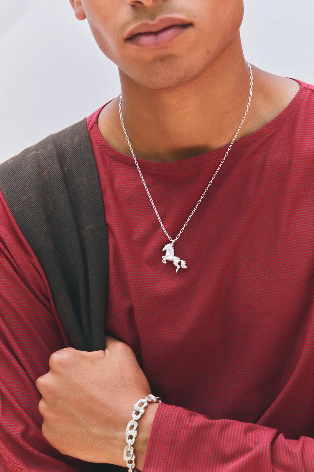 Caballo, handmade recycled 925 sterling silver necklace with natural Blue Topaz, Green Peridot, Orange Citrine and Rose Quartz stones.