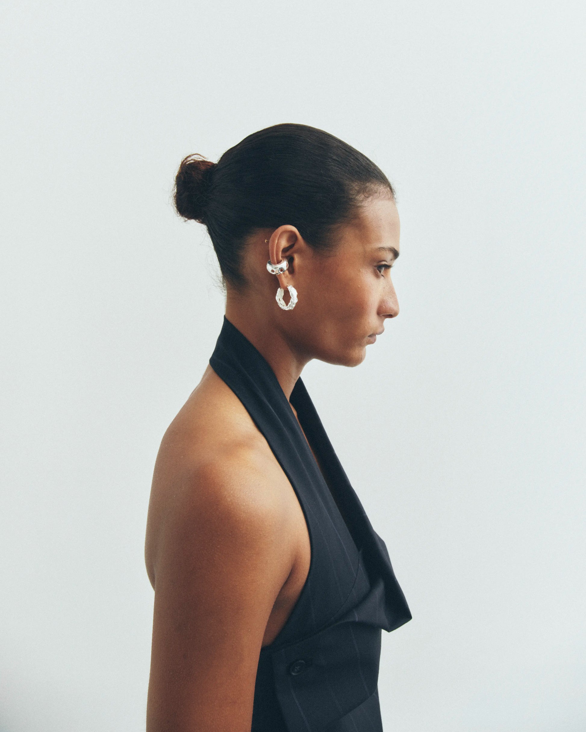 Cabo, handmade recycled 925 sterling silver hoop earrings with texture.