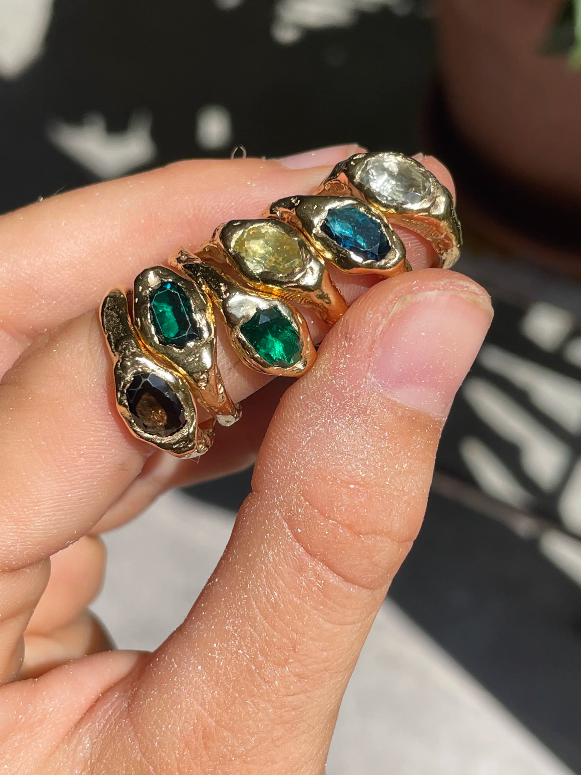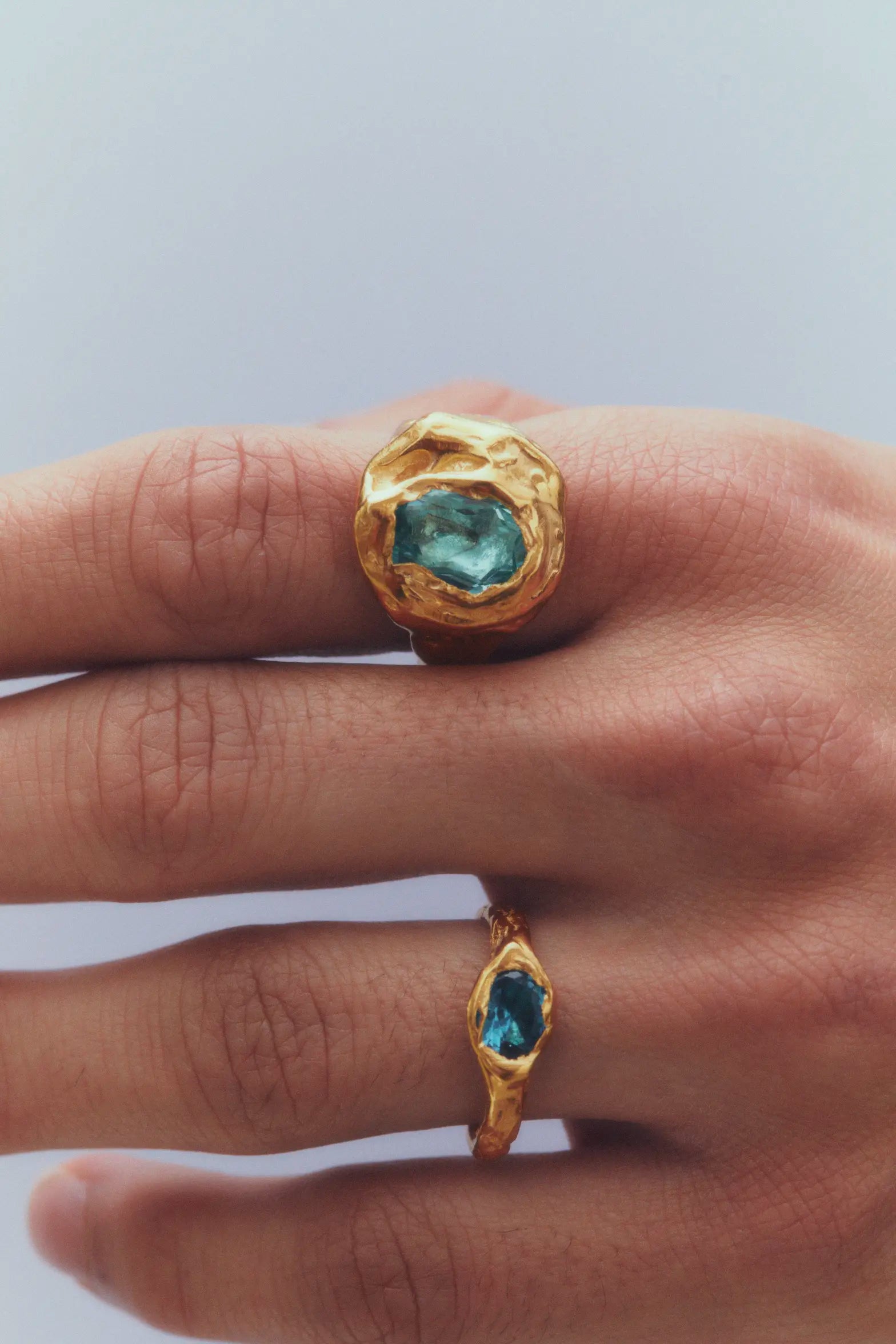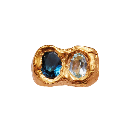 Faro Formentor, handmade recycled 925 sterling silver ring gold plated with Topaz Cz stone.