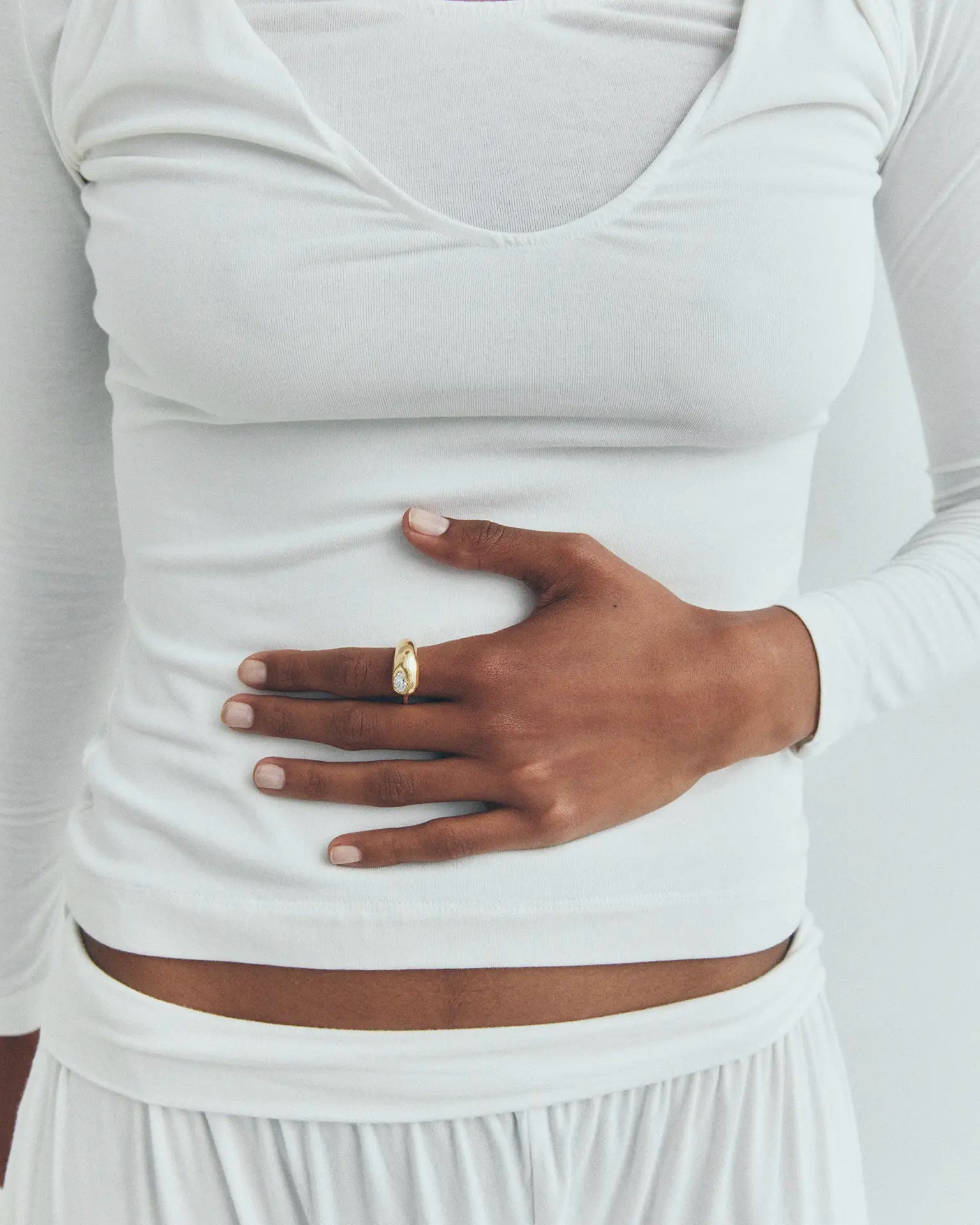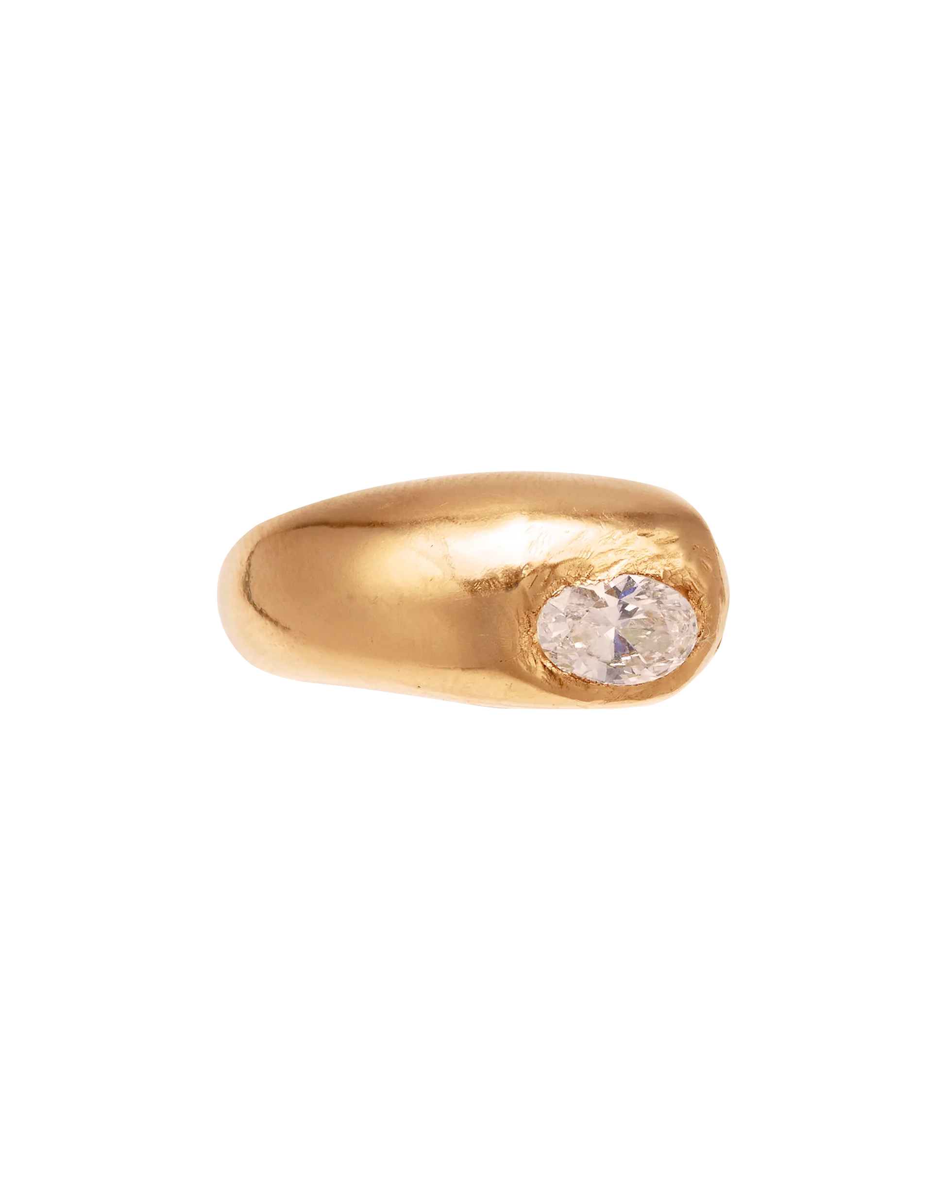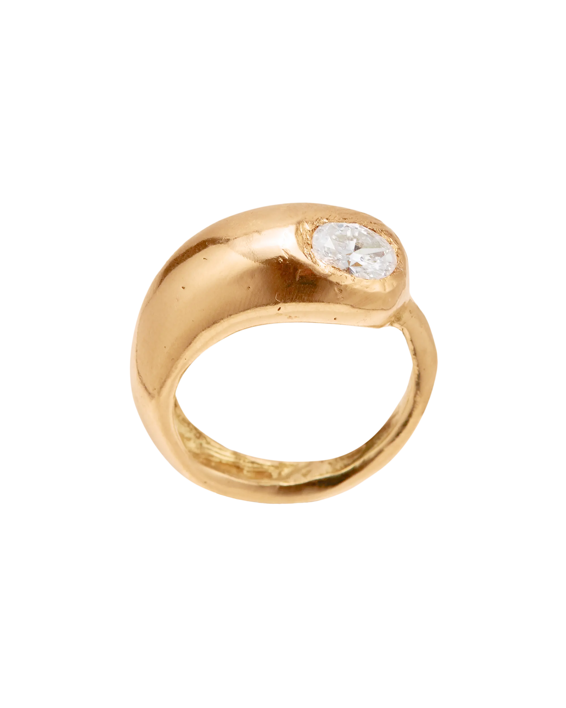 18k solid gold Gota ring, handcrafted in our workshop and set with an oval-cut 0,5 carat diamond.