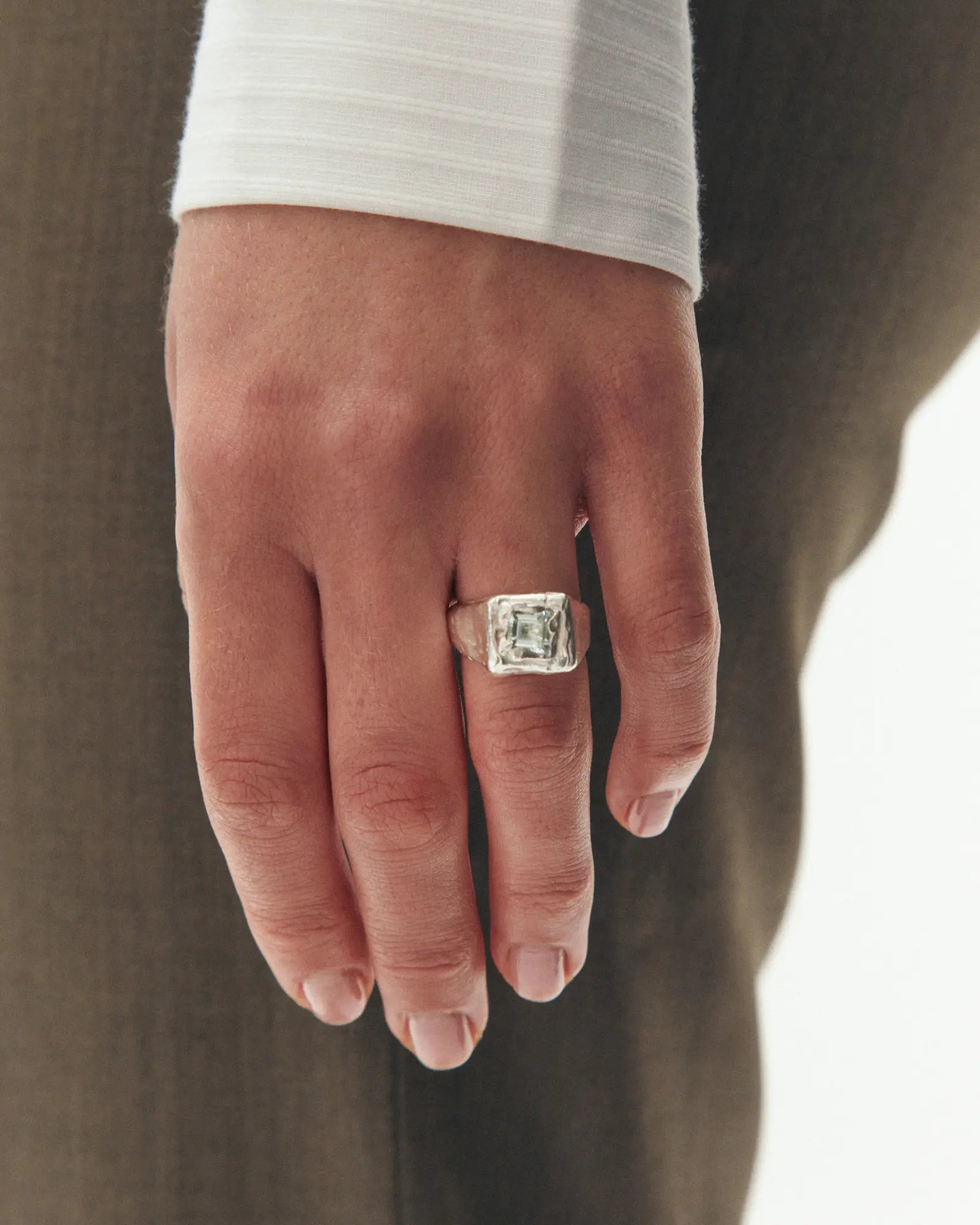 Marzo, handmade recycled 925 sterling silver ring with a natural Aquamarine gem.