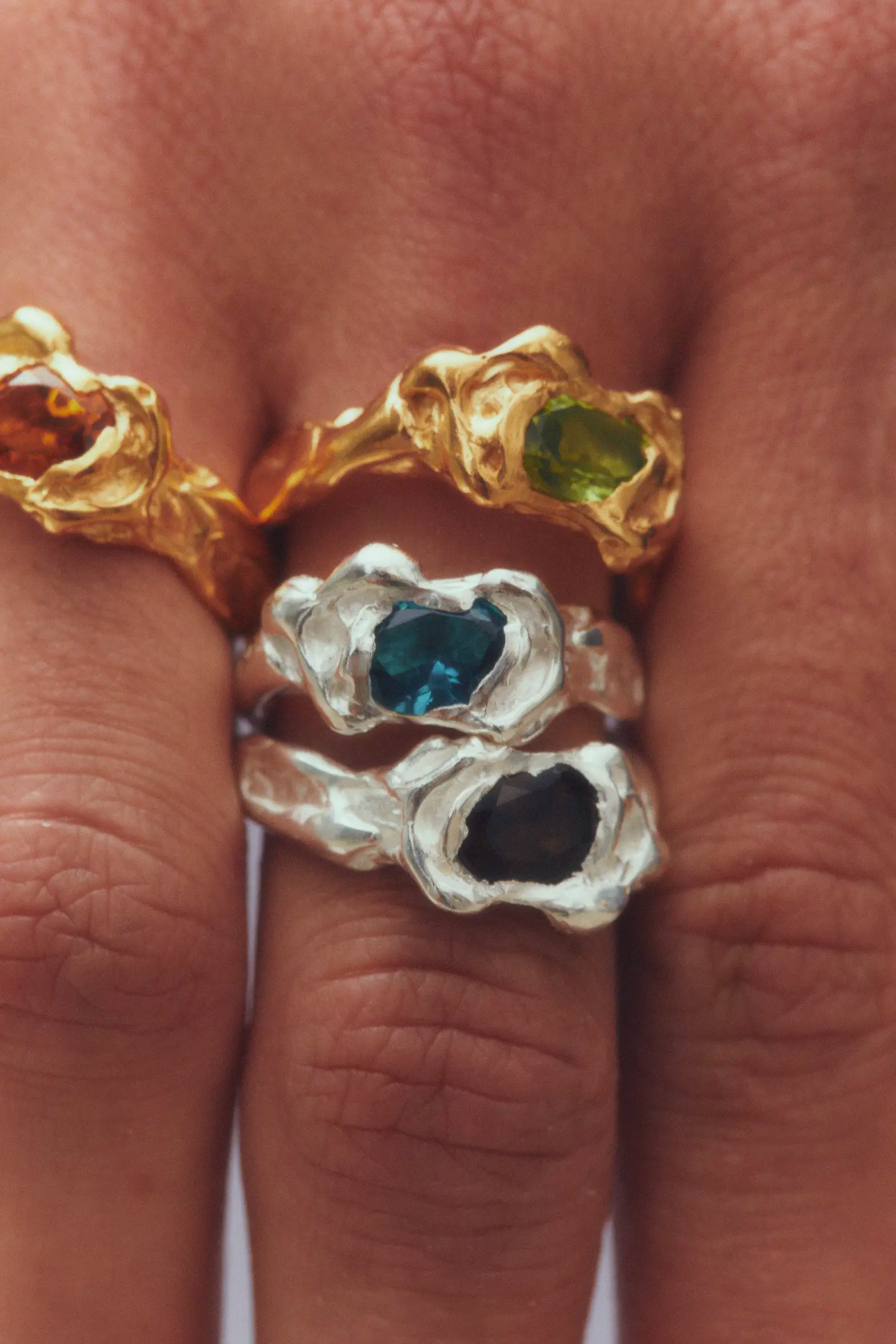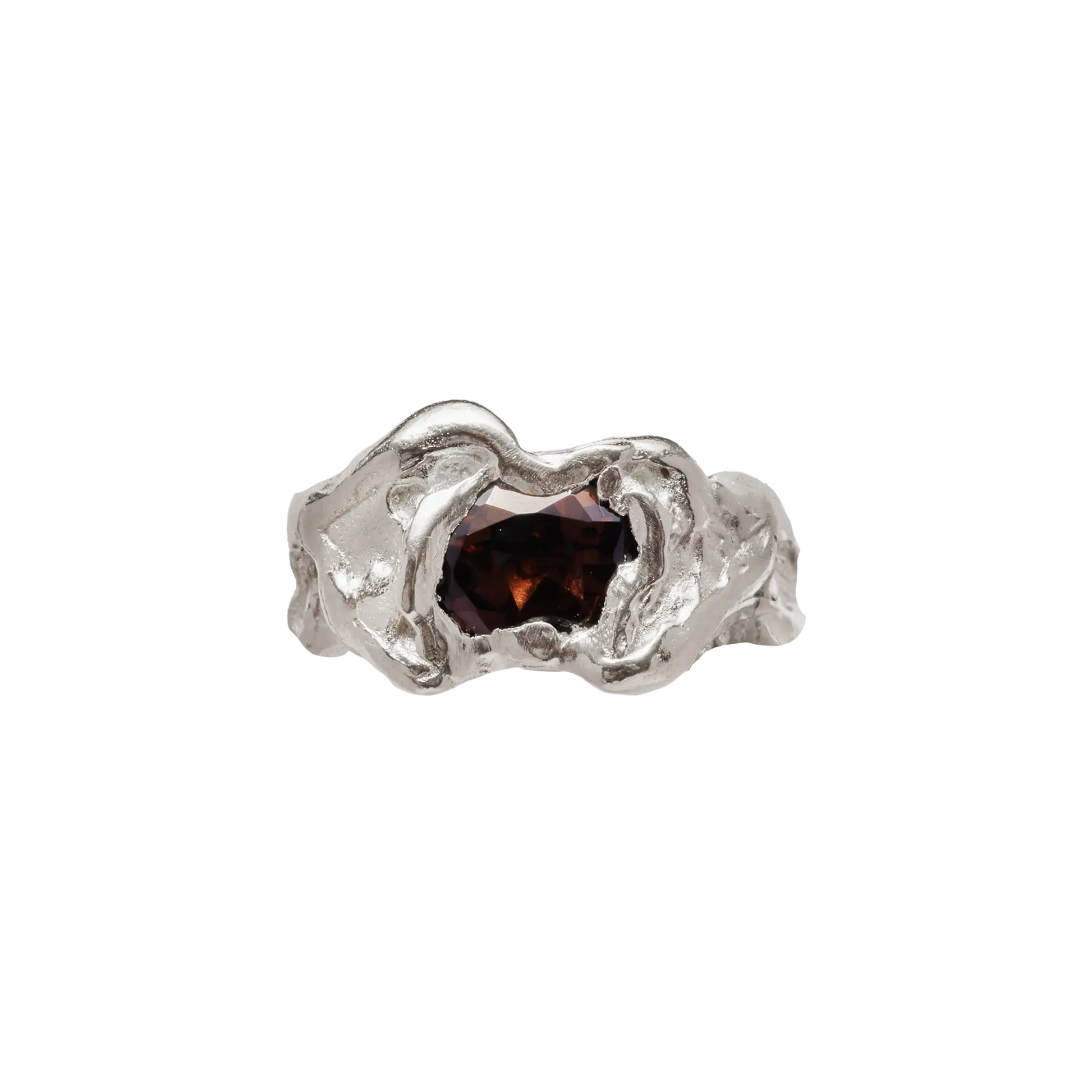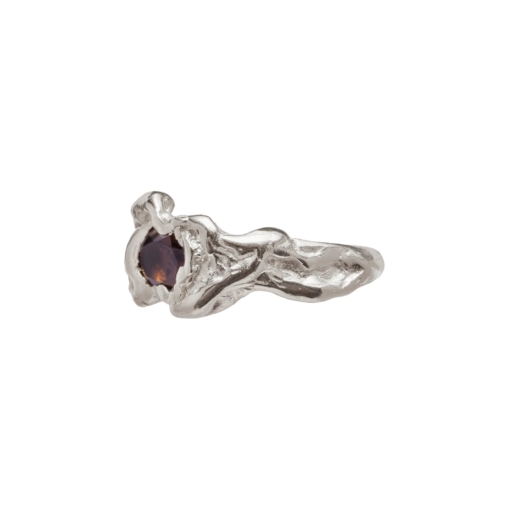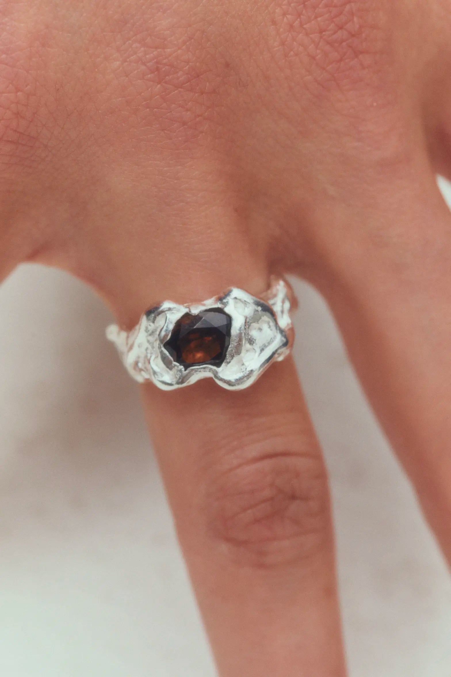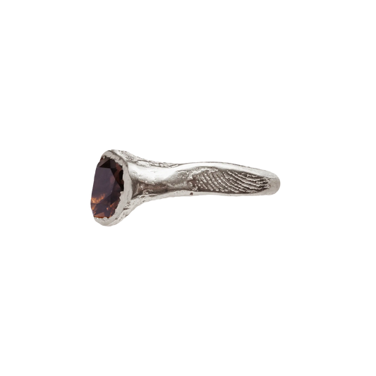 Ola Brown, handmade recycled 925 sterling silver ring with smoky quartz natural stone.