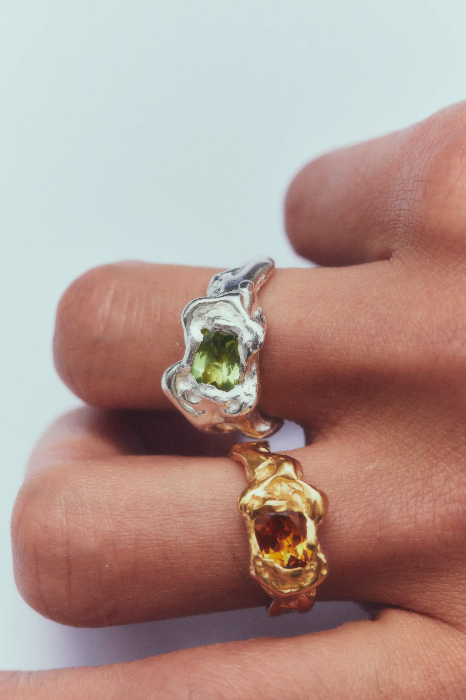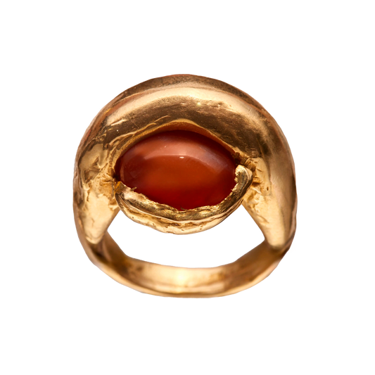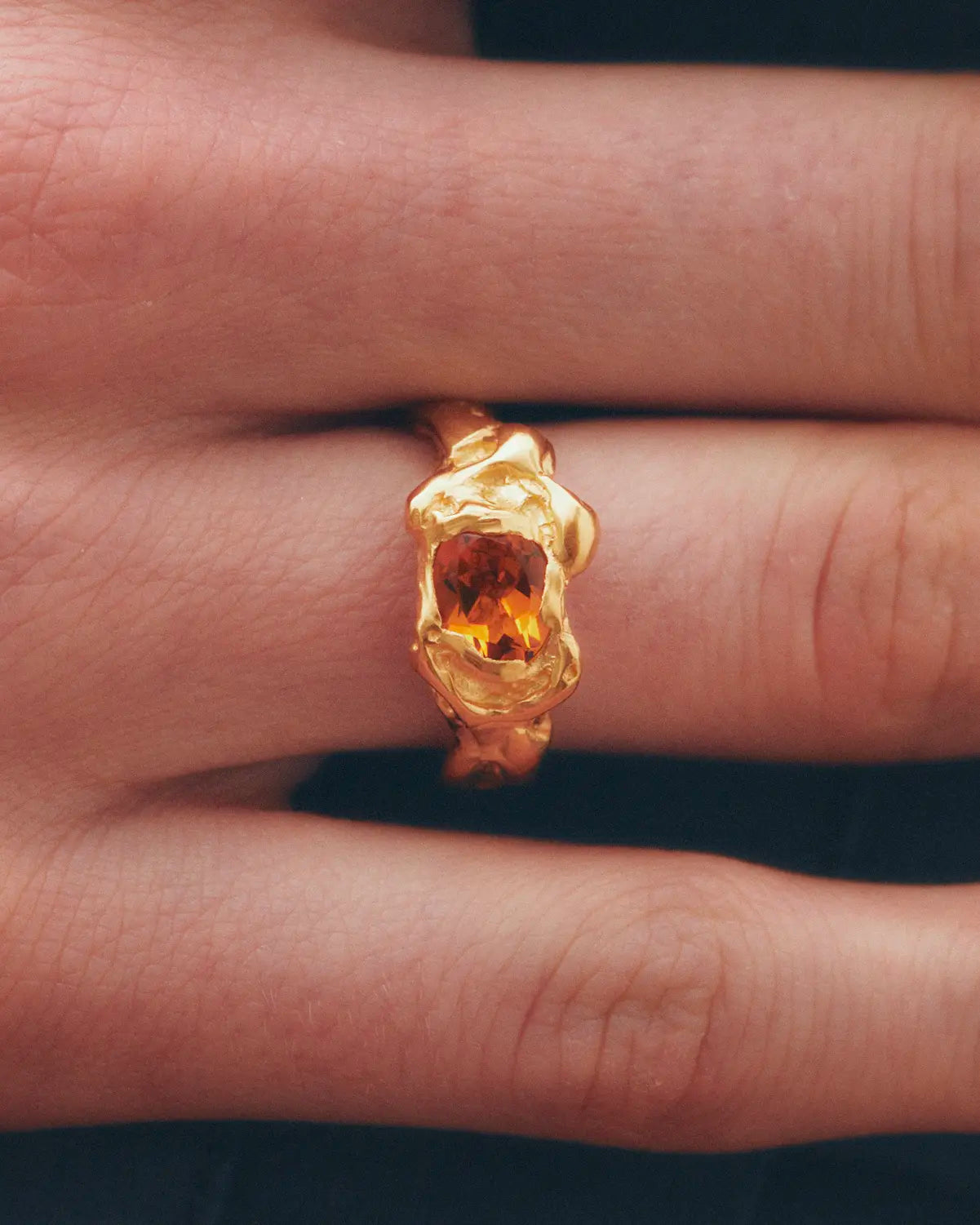 Ola Orange, handmade gold plated recycled 925 sterling silver ring with orange citrine natural stone.