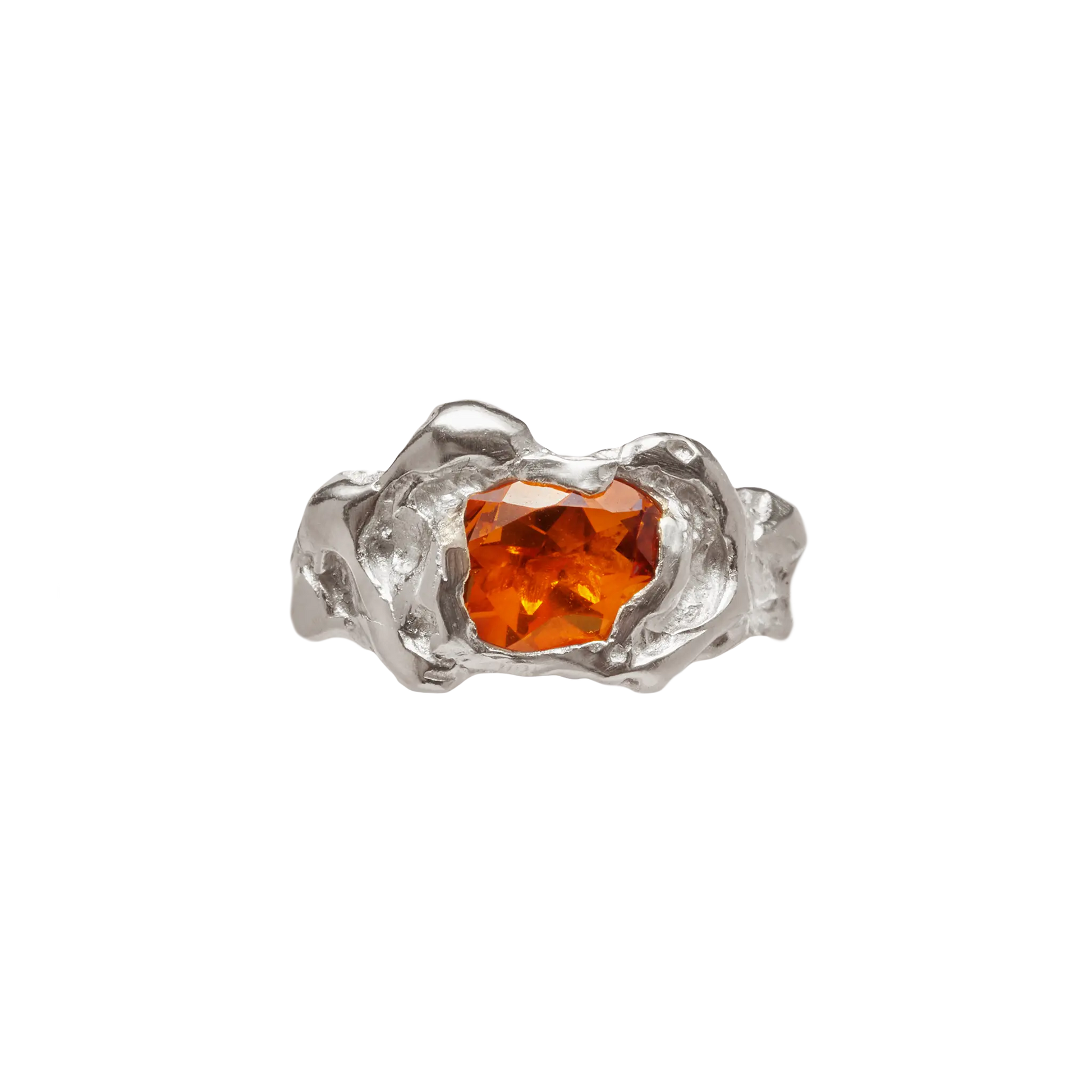 Ola Orange, handmade recycled 925 sterling silver ring with natural orange citrine stone.