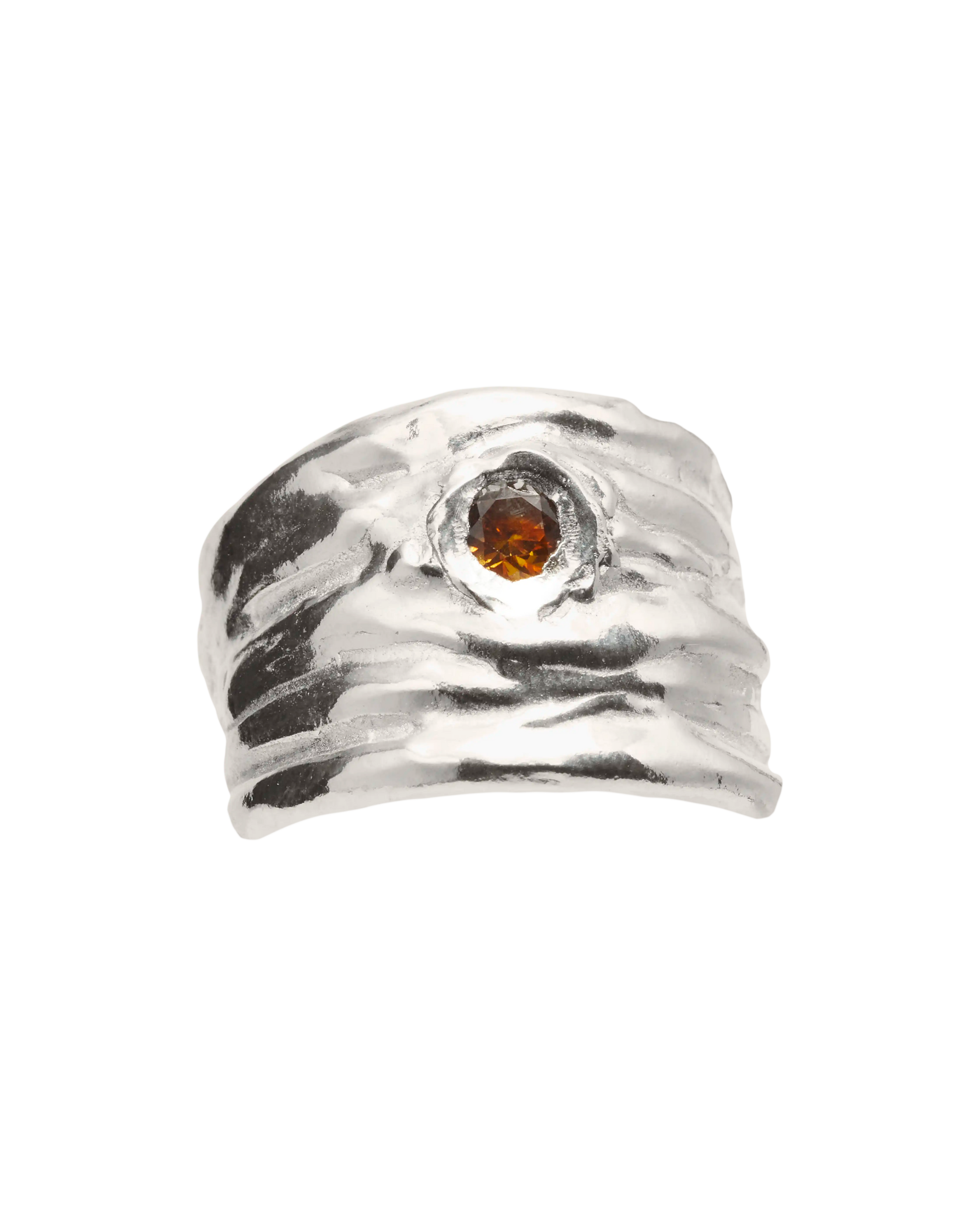 Orilla, handmade recycled 925 sterling silver toe ring with Lab-Grown Orange Sapphire stone. One size only.