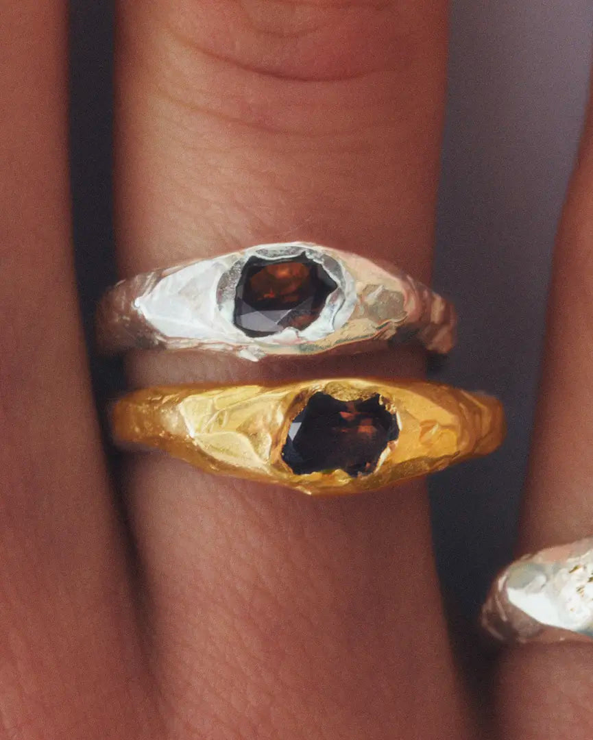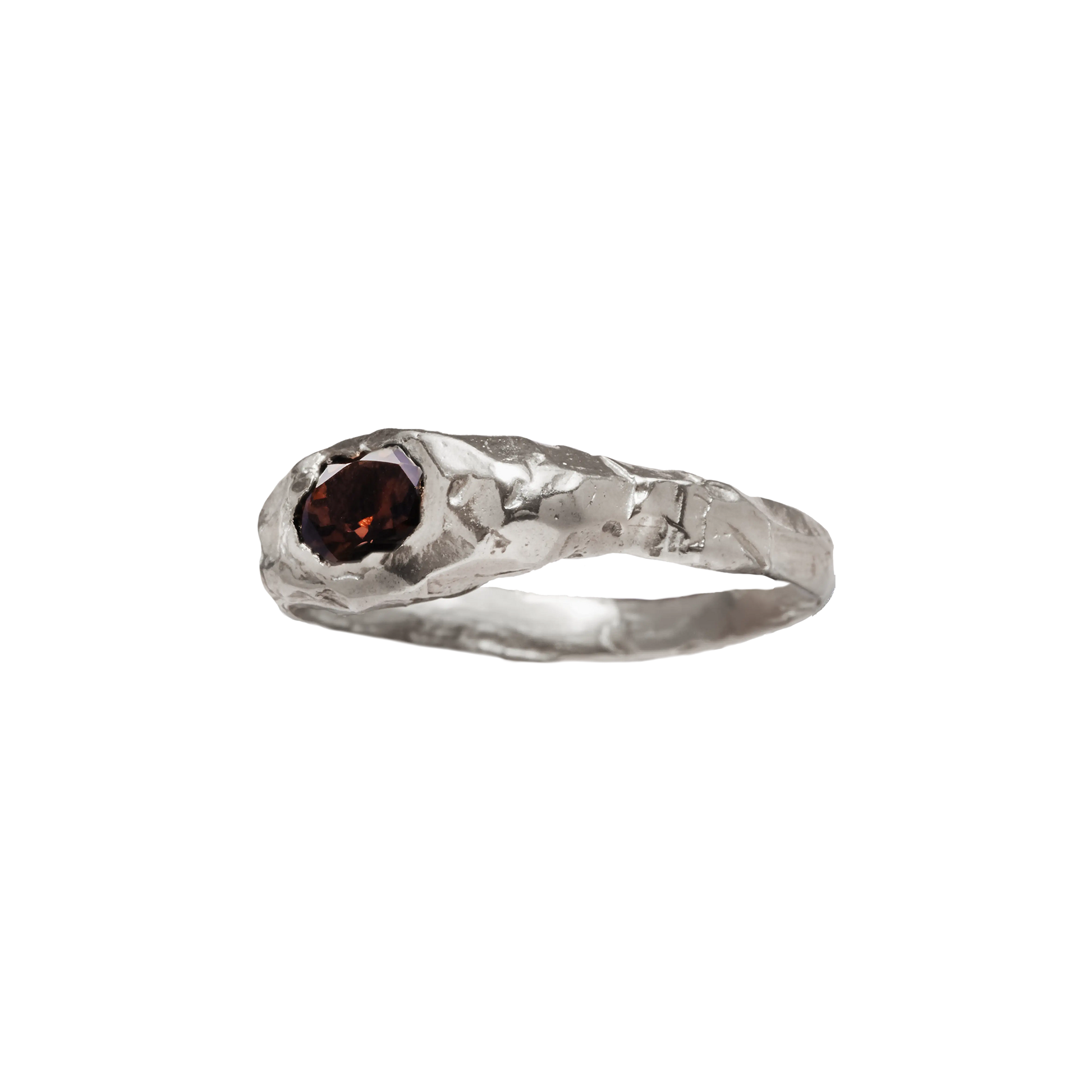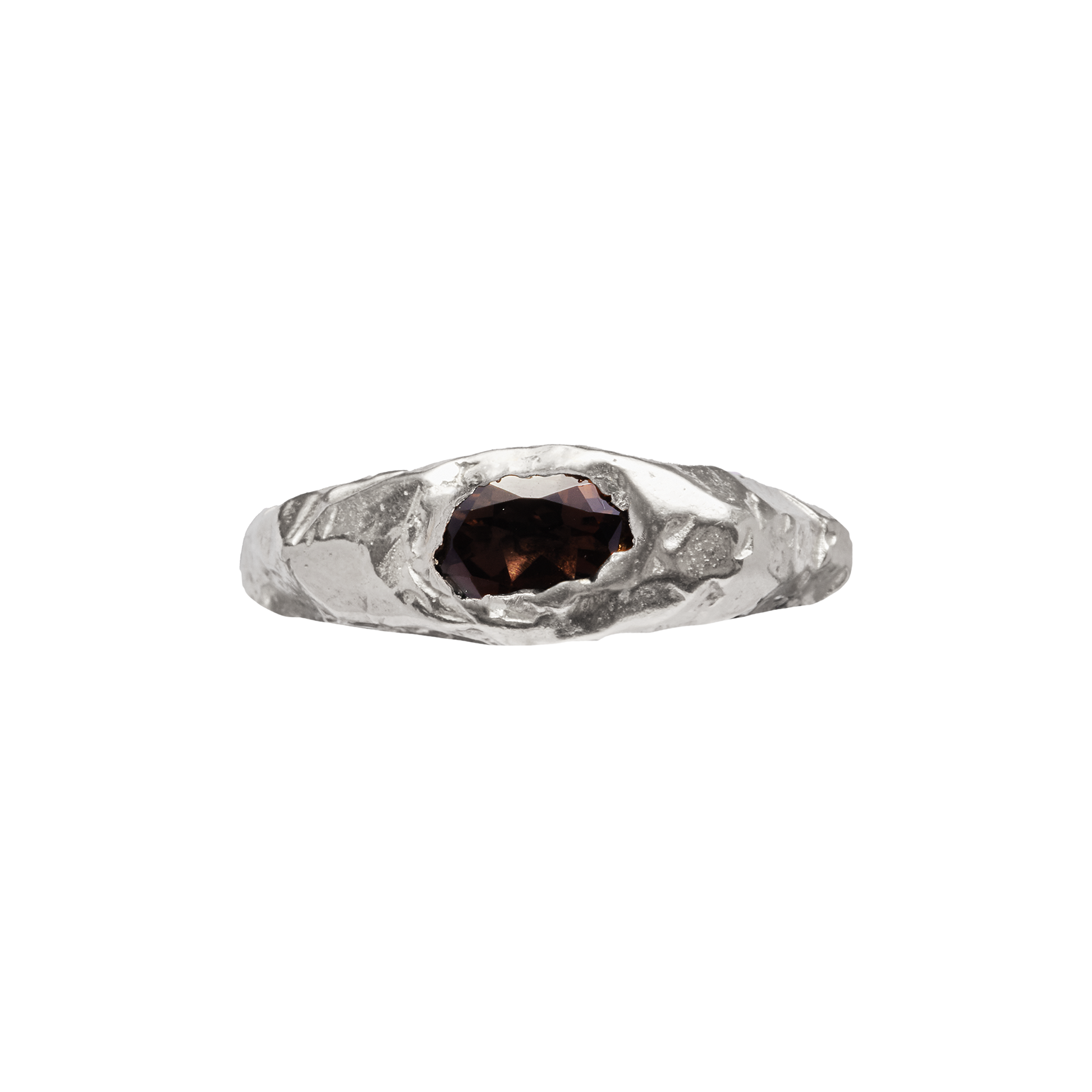 recycled 925 sterling silver ring with natural Smoky Quartz.