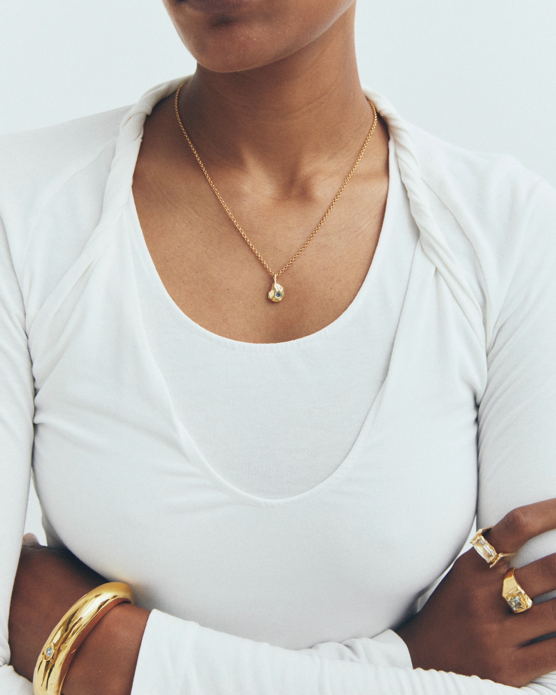 Por un perro, handmade gold plated necklace with natural London Blue Topaz stone.