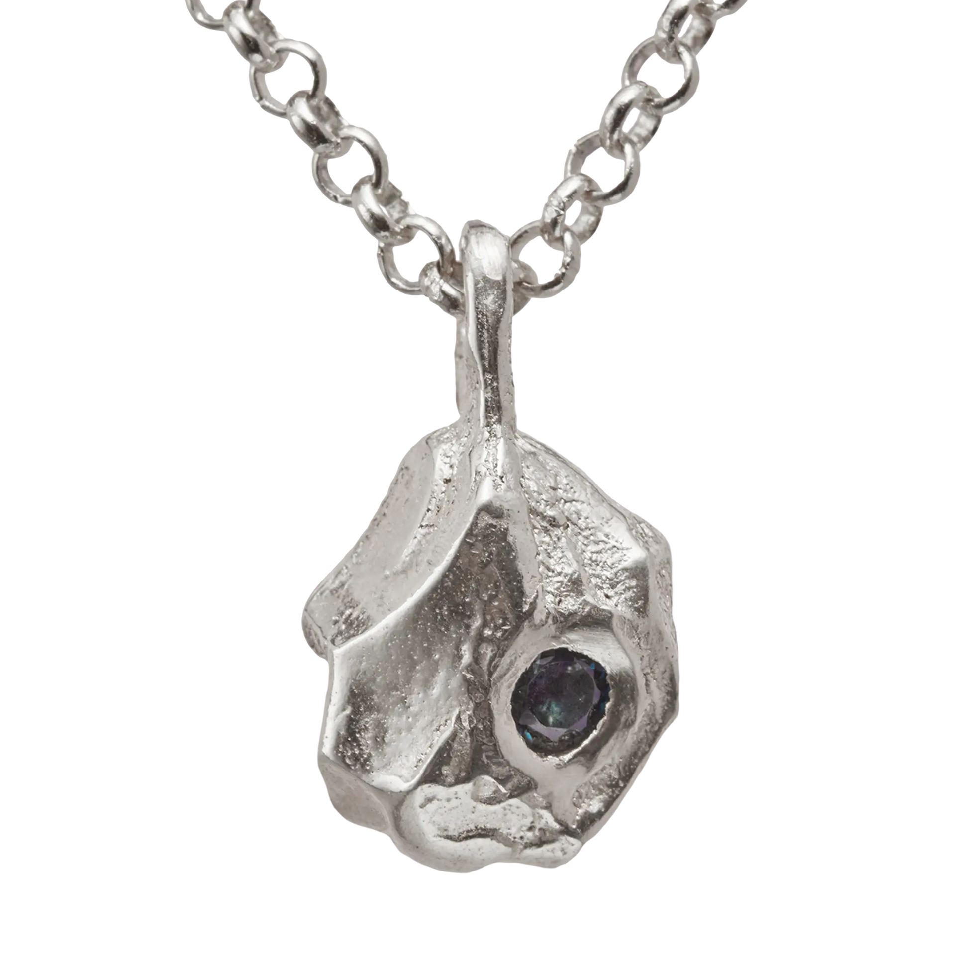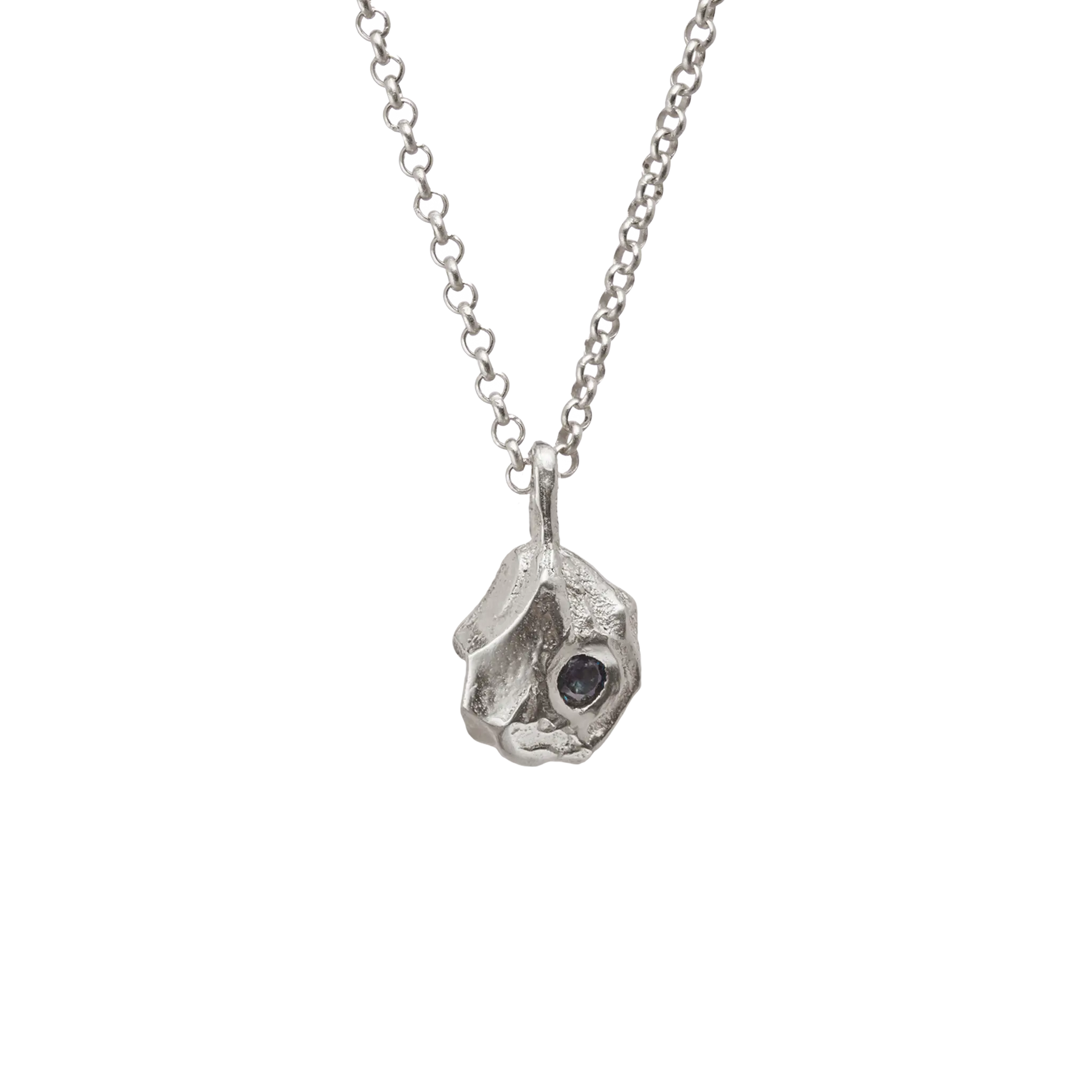 Por un perro, handmade recycled 925 sterling silver necklace with natural London Blue Topaz stone.